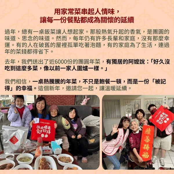 《老人福利關懷協會x娘家廚房》送愛募集-公益愛心年菜募集(購買者不會收到商品)