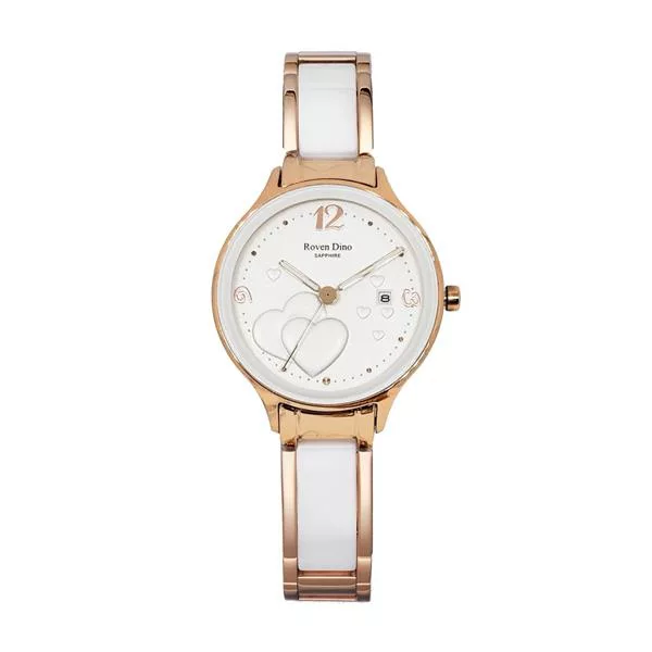 Roven Dino羅梵迪諾 心心相印時尚腕錶-玫瑰金X白