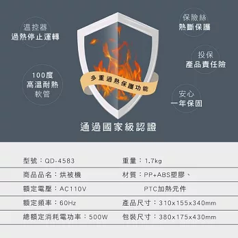 【KINYO】熱風除菌折疊烘衣機(DY-1000)