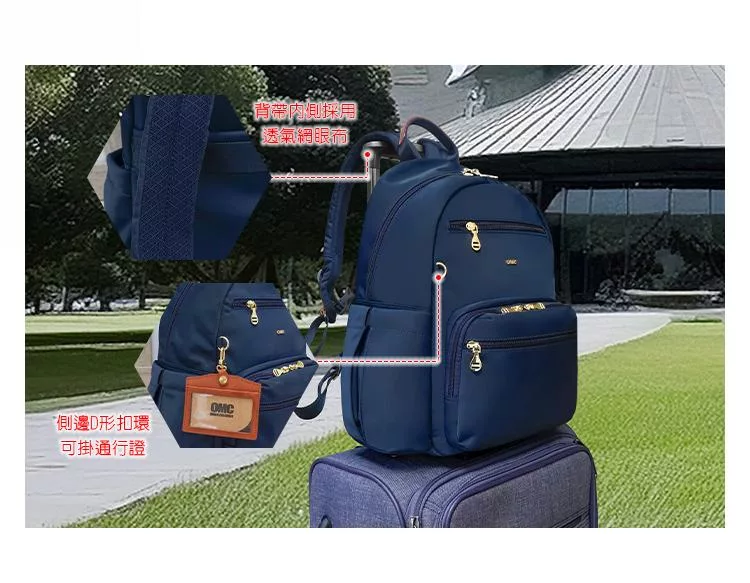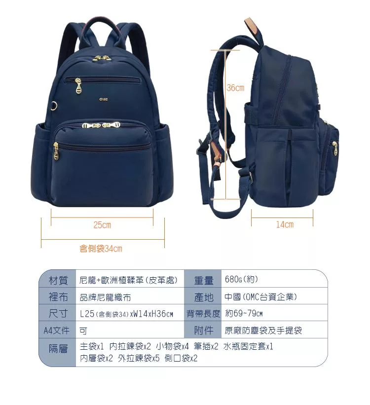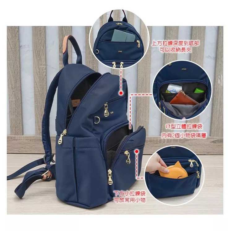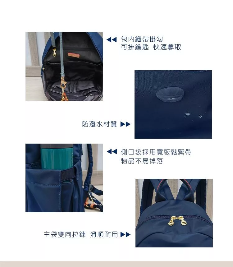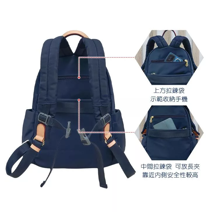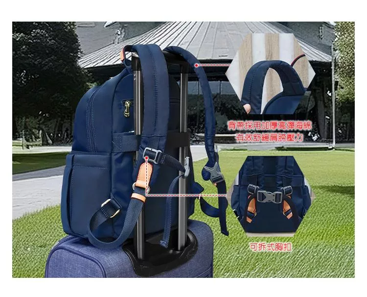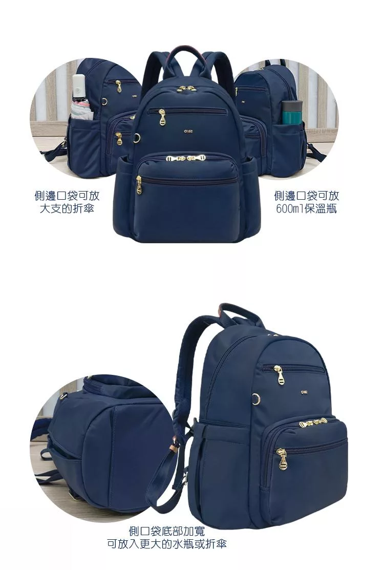 CHENSON 尼龍9口袋 媽媽包 後背包附水壺固定內口袋 (CG85110-K) 卡其杏