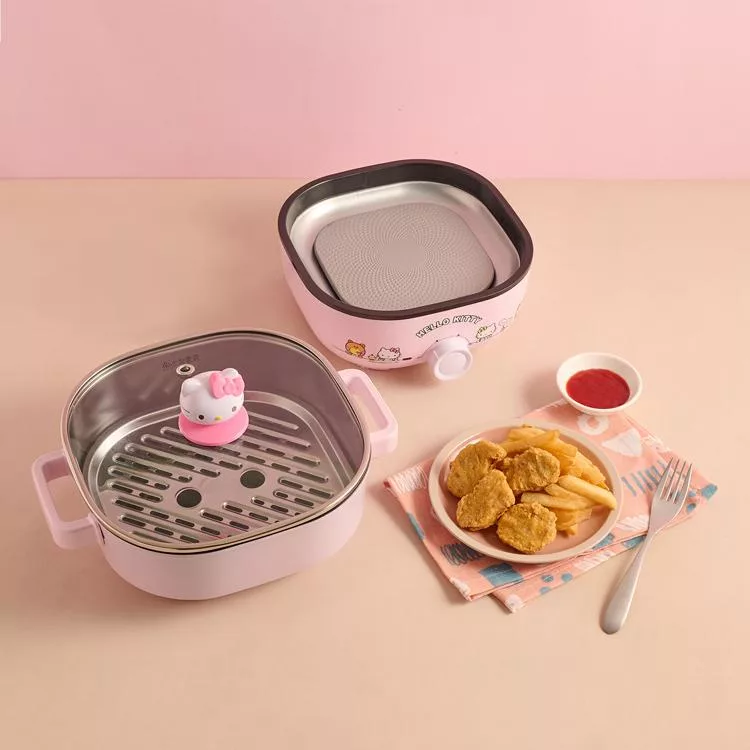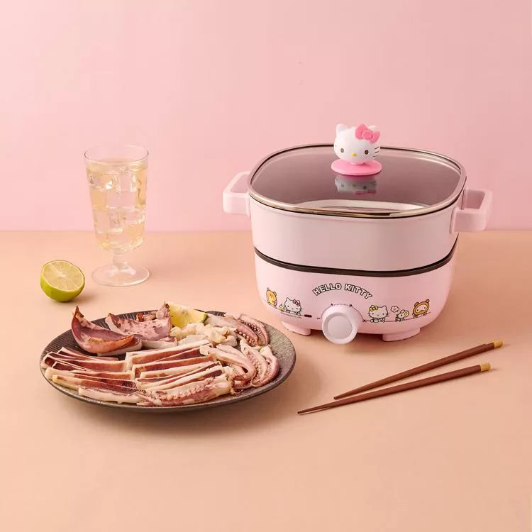 HELLO KITTY多功能分離式3L料理鍋-二色可選 KT-EP02 贈 MATURE美萃 MINI食光陶瓷熱壓機 CY-1627 -粉紅色
