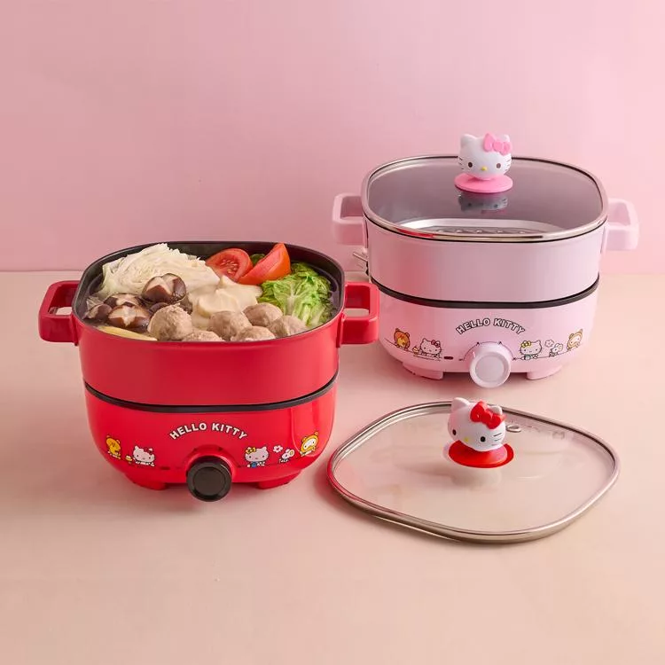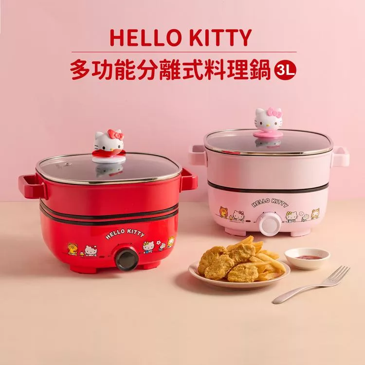 HELLO KITTY多功能分離式3L料理鍋-二色可選 KT-EP02 贈 MATURE美萃 MINI食光陶瓷熱壓機 CY-1627 -紅色