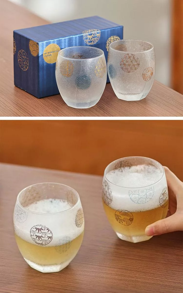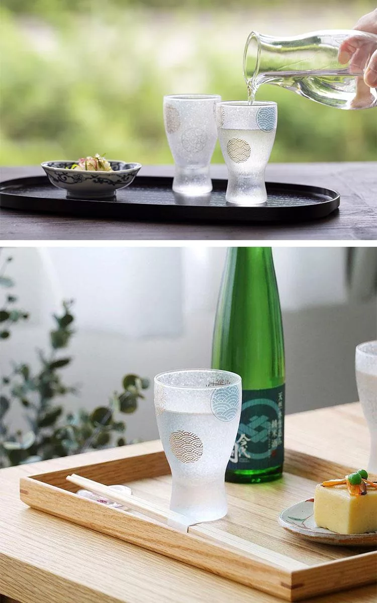 【日本Toyo Sasaki】波千鳥&菱紋 和紋玻璃清酒杯150ml