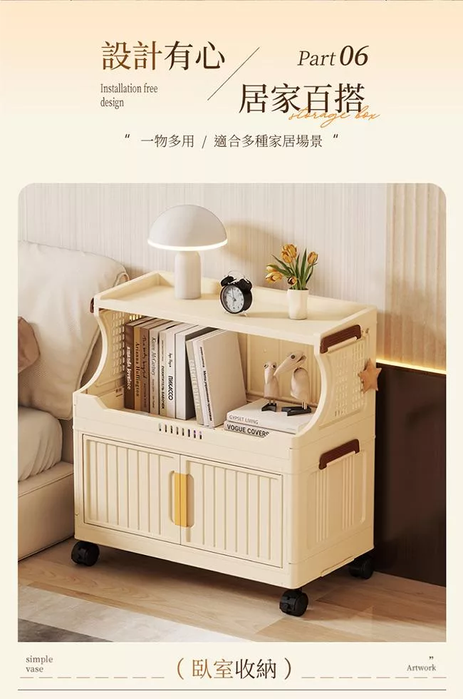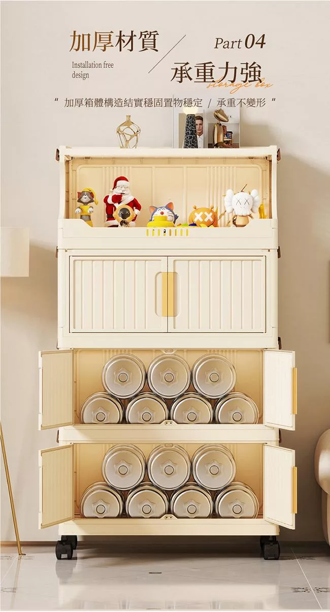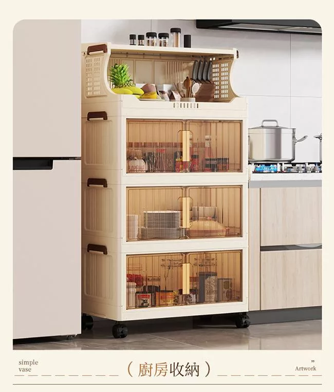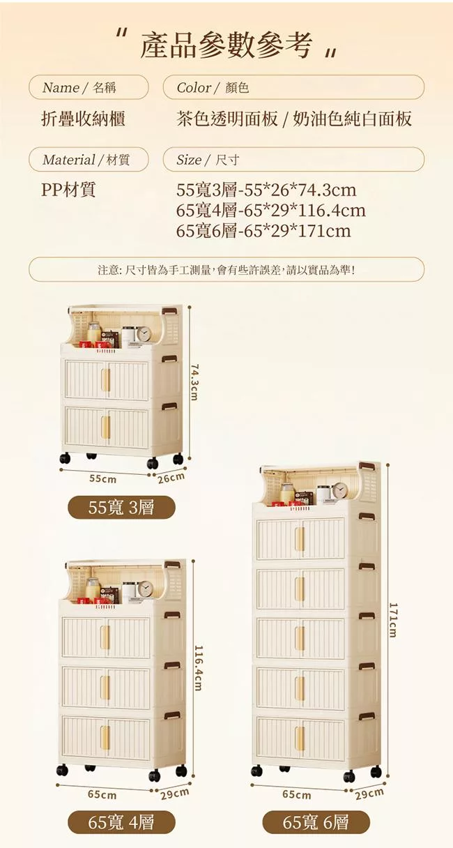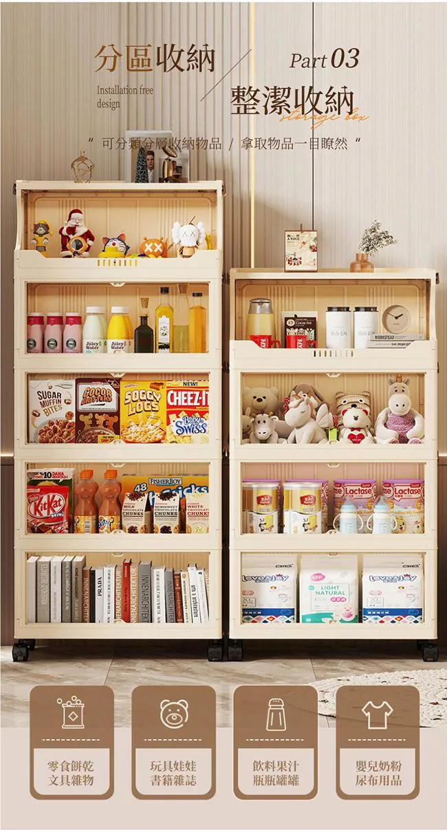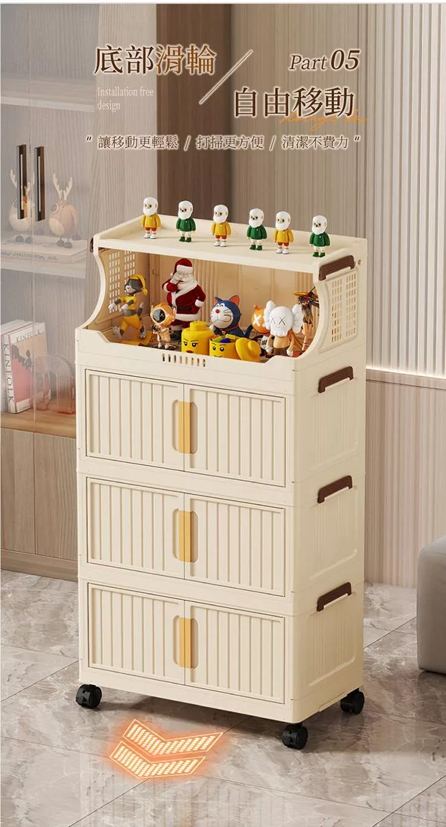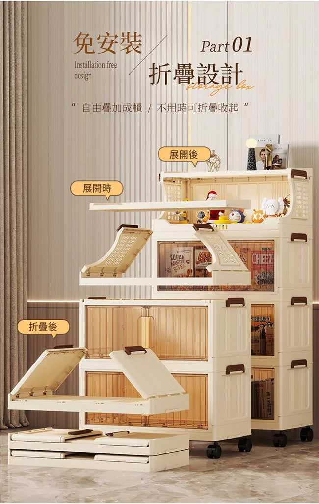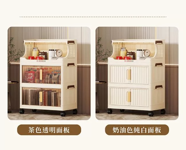 【好氣氛家居】92面寬加大折疊式移動塑膠收納櫃-五層款/兩色可選 茶色透明面板