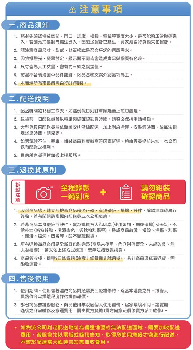 非屬上列品項之商品均享有到貨十天的猶豫期(含例假日)。退回之商品必須於猶豫期內寄回。