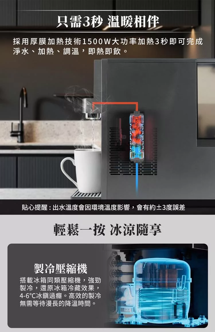 4合一出水口,熱水、溫水、冰水、氣泡水