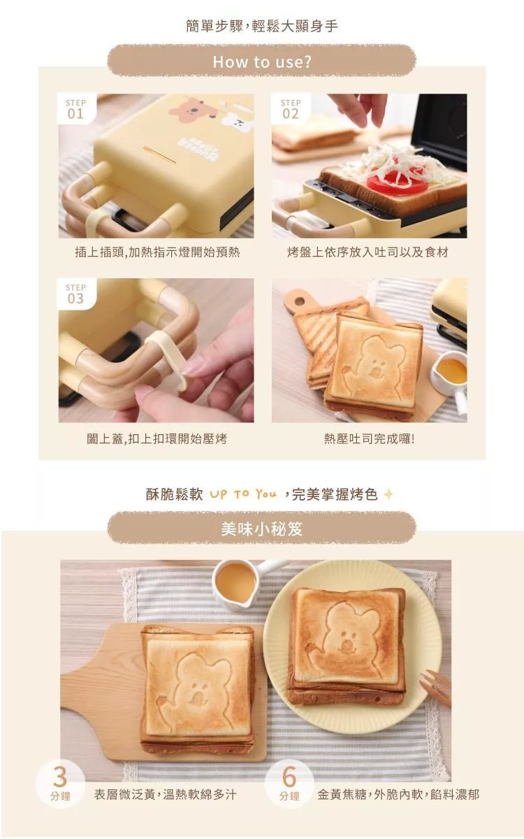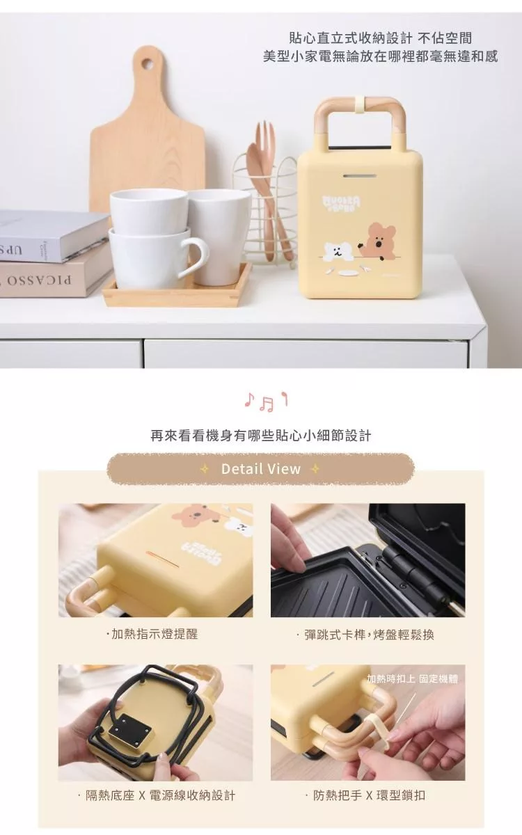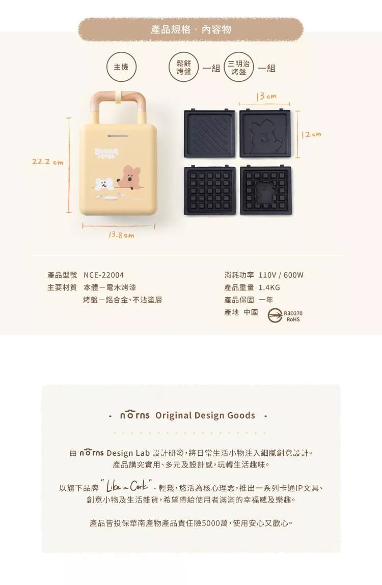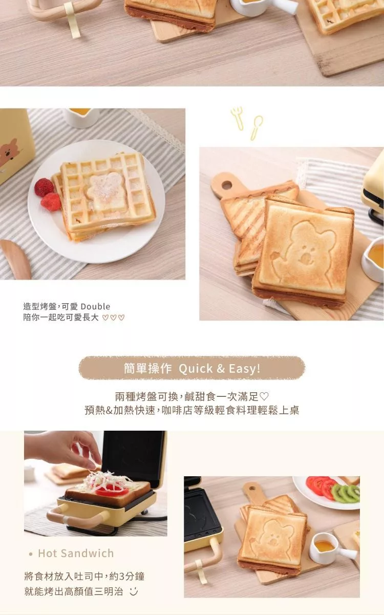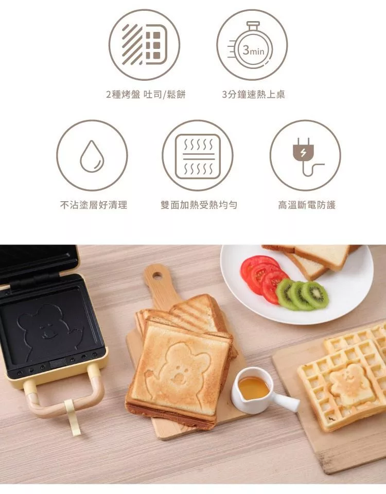 陶瓷熱壓三明治鬆餅機-二色可選 CY-1625 奶油白