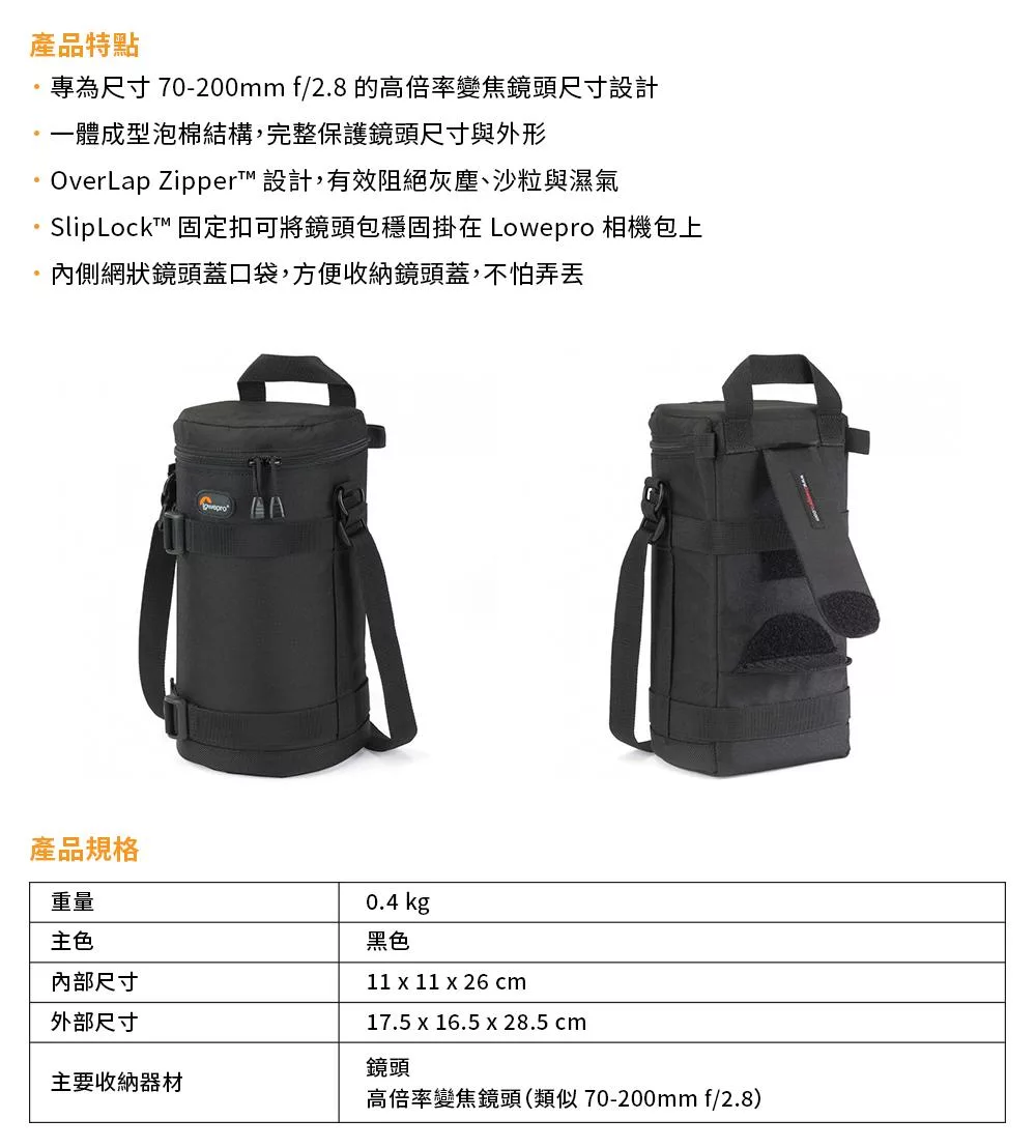 Lowepro 羅普 11X26CM 鏡頭收納袋 公司貨