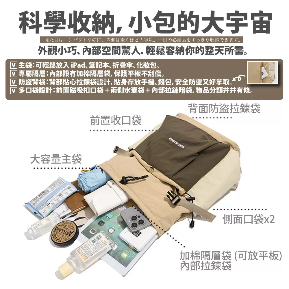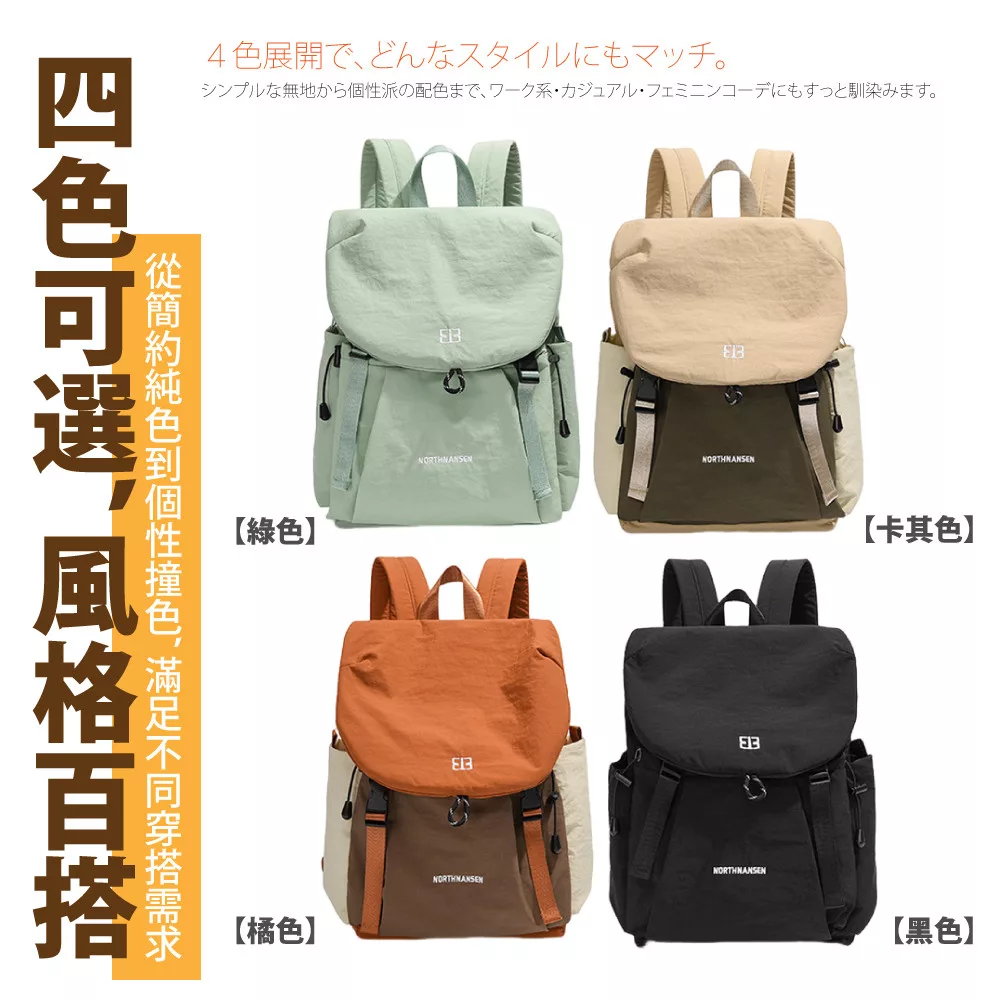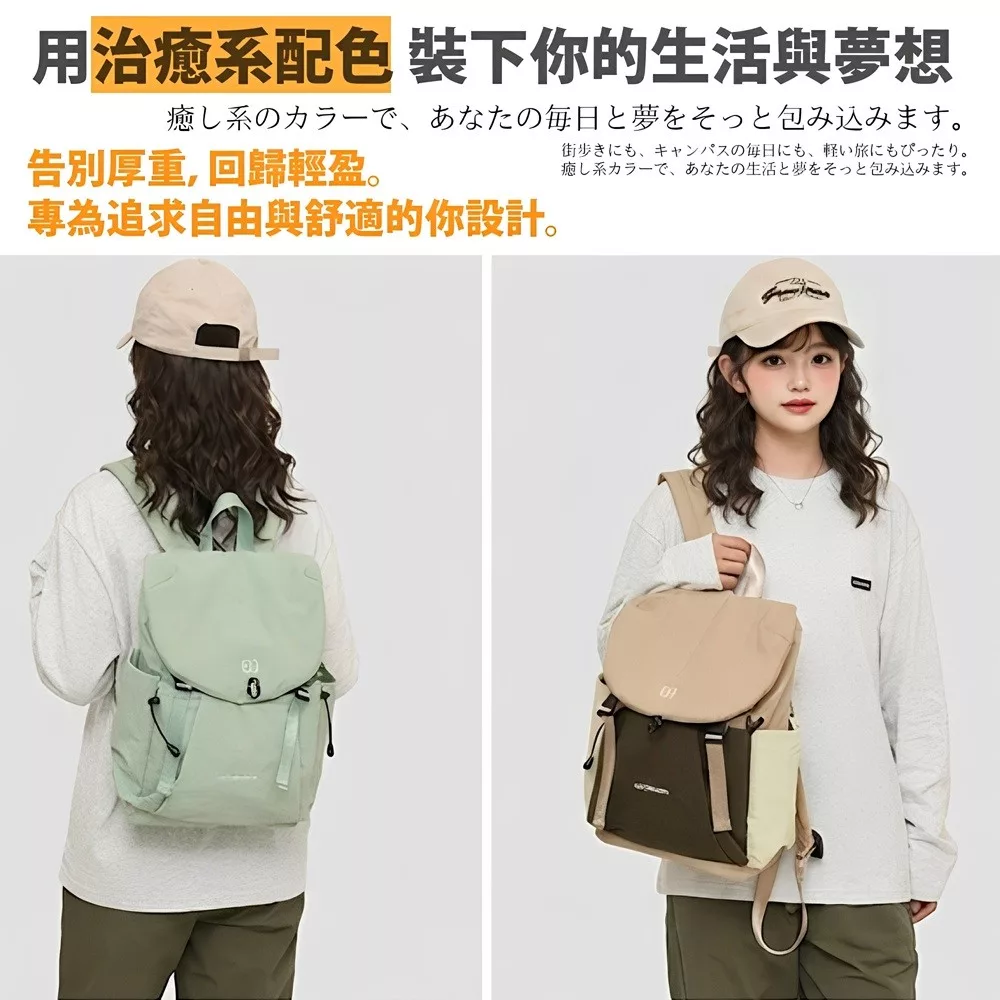 結合束口設計與防潑水尼龍材質,展現日系簡約風格