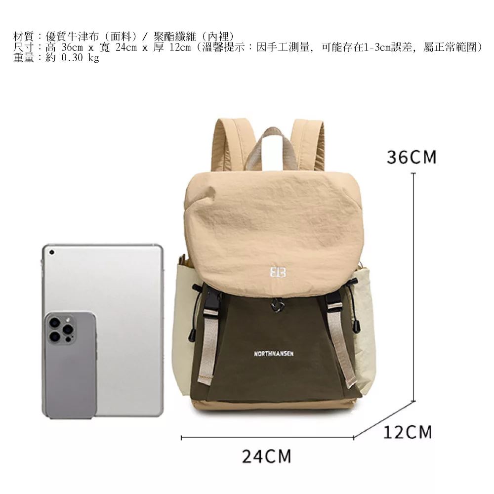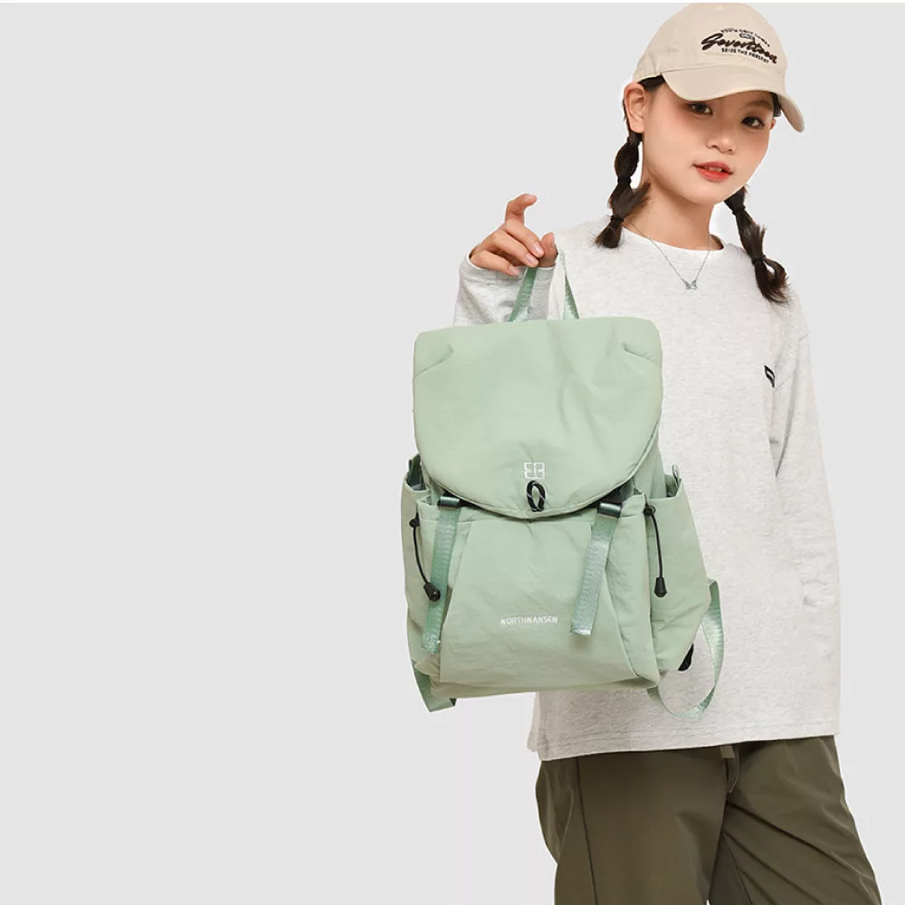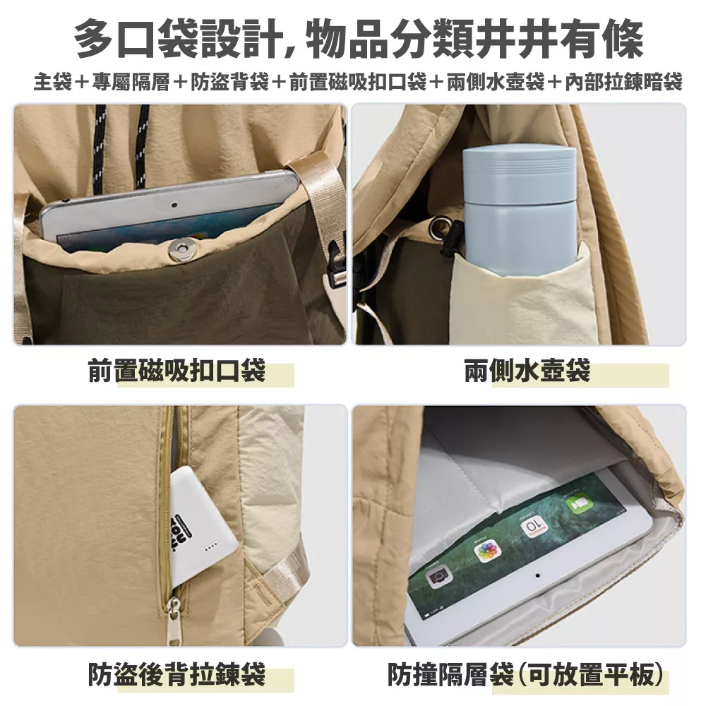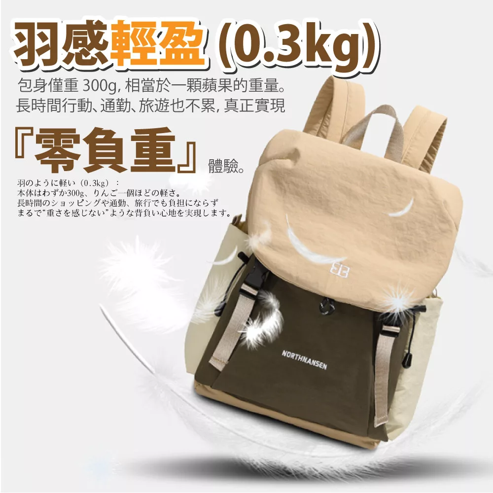 結合束口設計與防潑水尼龍材質,展現日系簡約風格