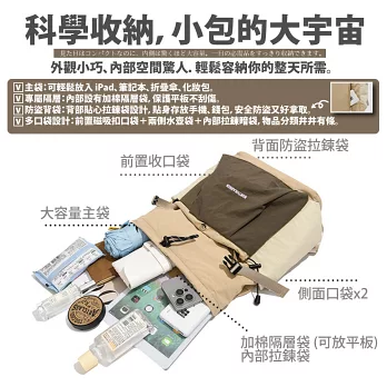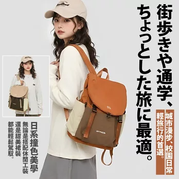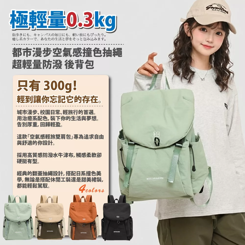【Sayaka紗彌佳】買一送一! 買就送手拿包 極輕量0.3kg 都市漫步空氣感撞色抽繩 超輕量防潑 後背包 -卡其色