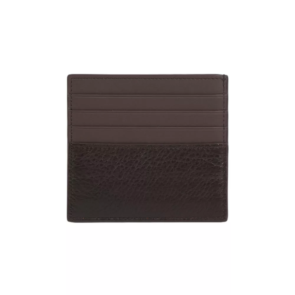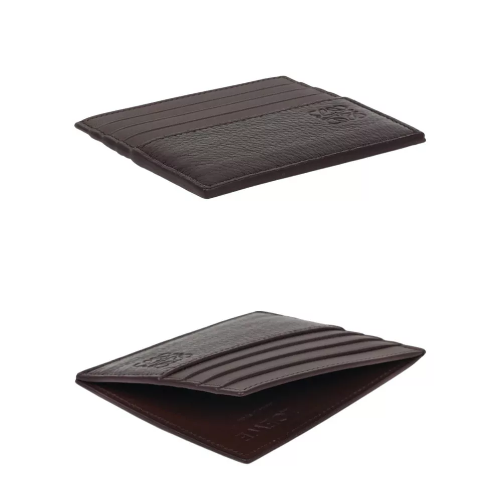LOEWE 鹿皮及牛皮側開放式8卡名片/卡片夾 (紅棕色)