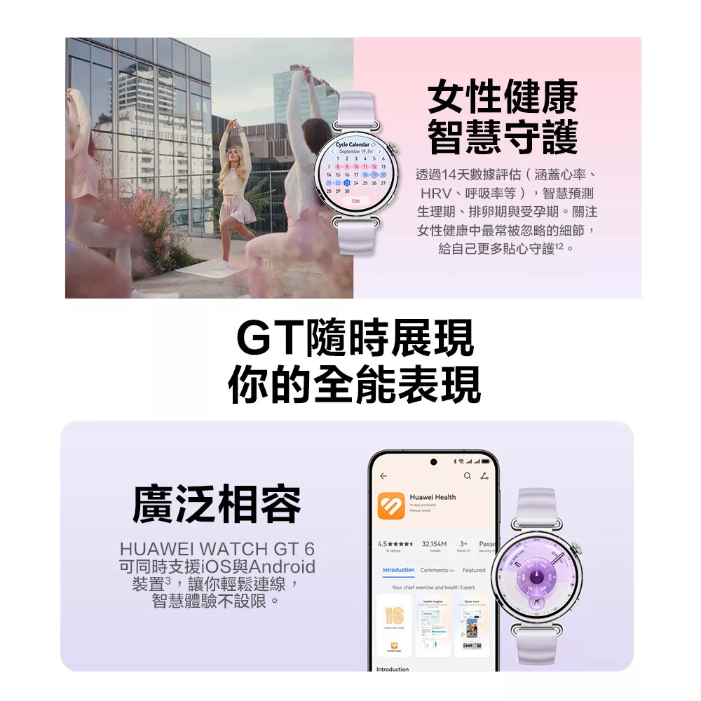 HUAWEI 華為 WATCH GT 6 GPS 健康運動智慧手錶 41mm 流光紫