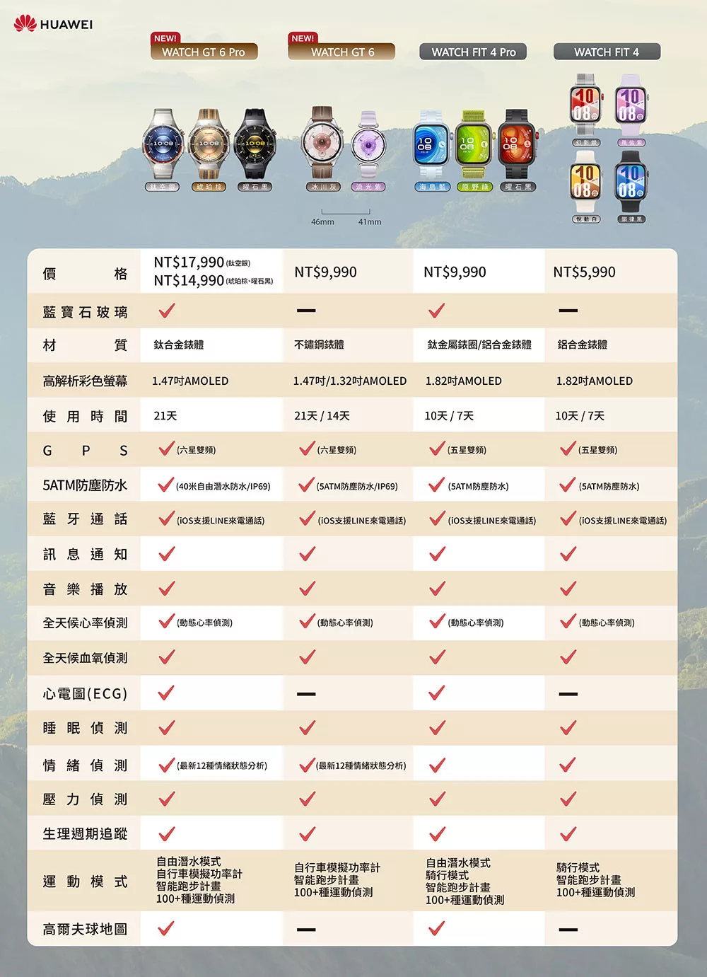 HUAWEI 華為 WATCH GT 6 GPS 健康運動智慧手錶 46mm 原野綠