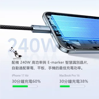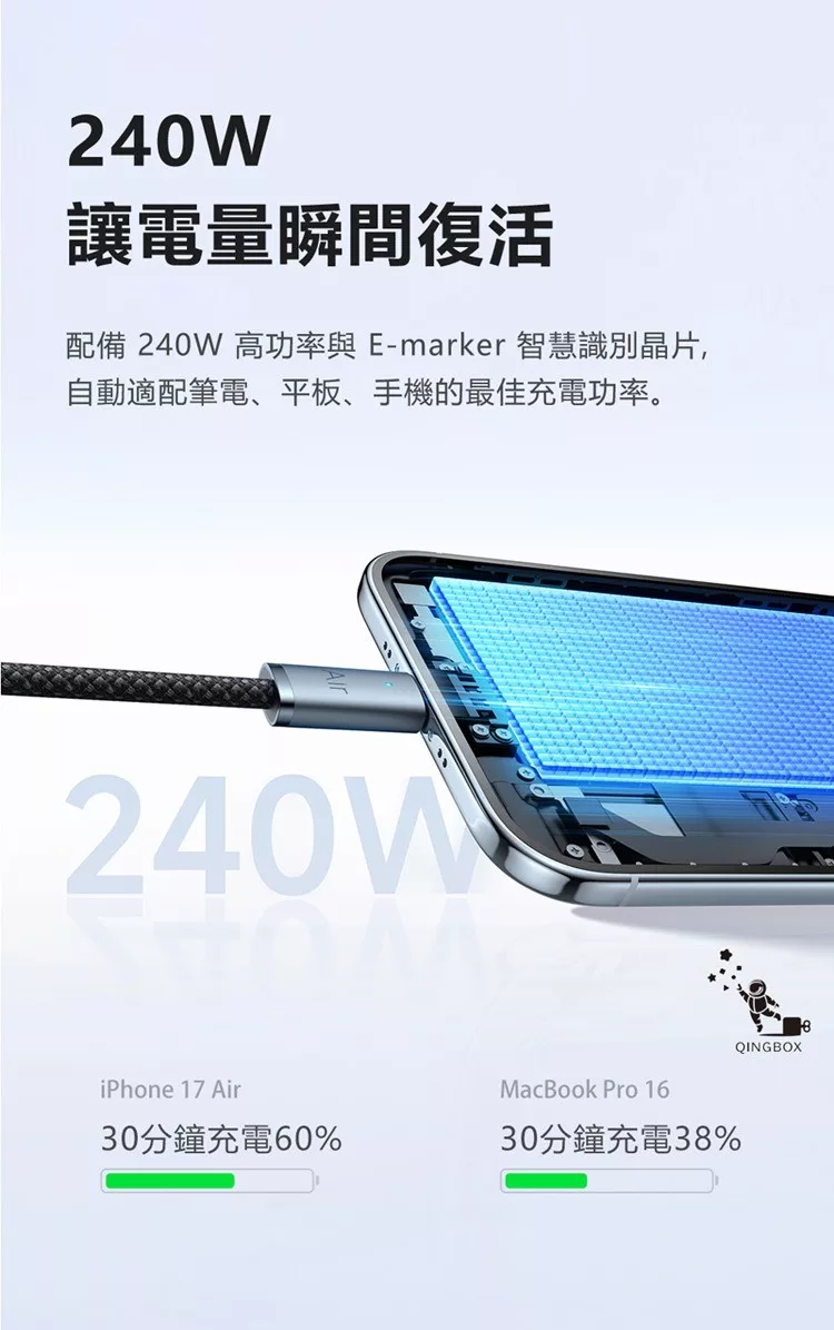 aibo 極速快充 PD100W 雙Type-C 傳輸充電線 1M