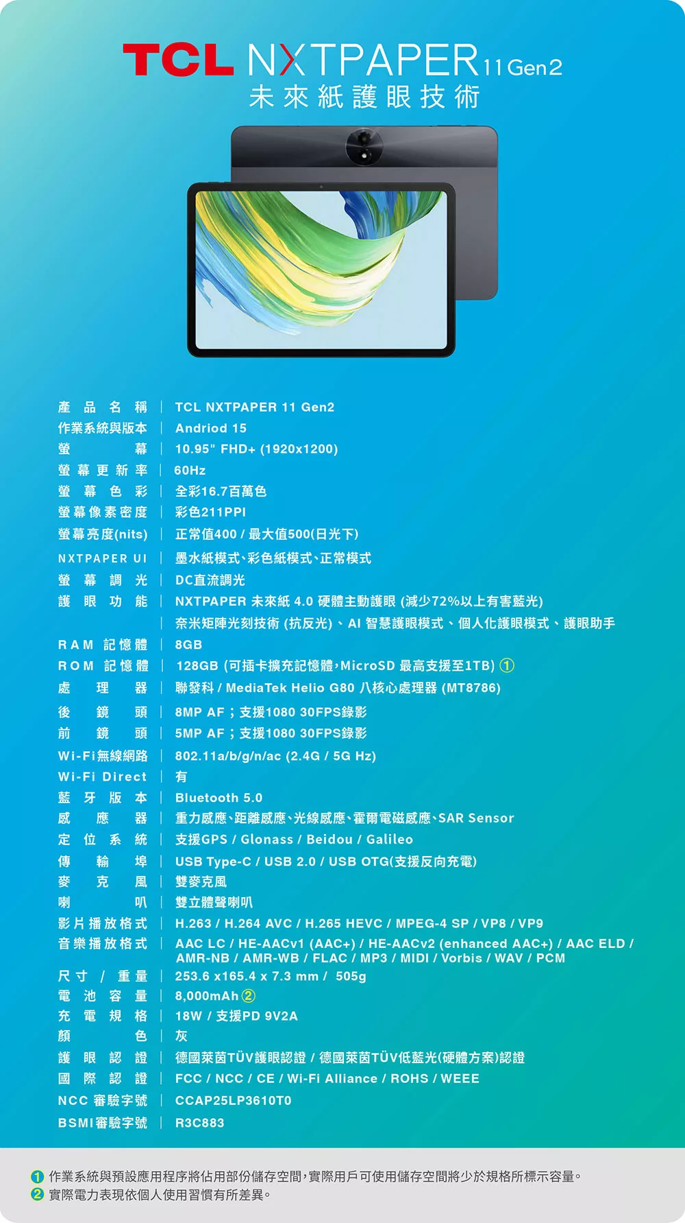 TCL NXTPAPER 11 Gen2 11吋 8G+128G WiFi 全彩未來紙螢幕護眼 平板電腦『送專屬雙軌可拆式皮套』