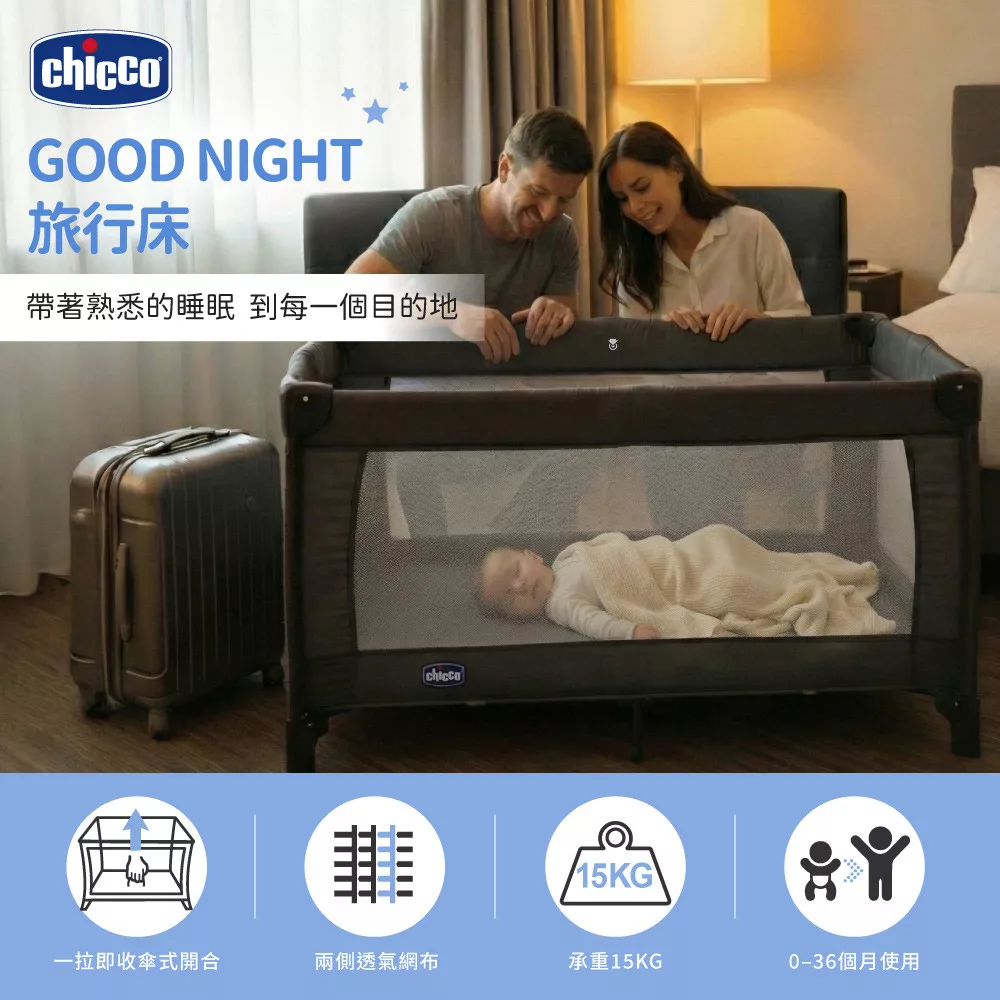 CHICCO goodnight輕旅折疊嬰兒遊戲床 霧岩灰