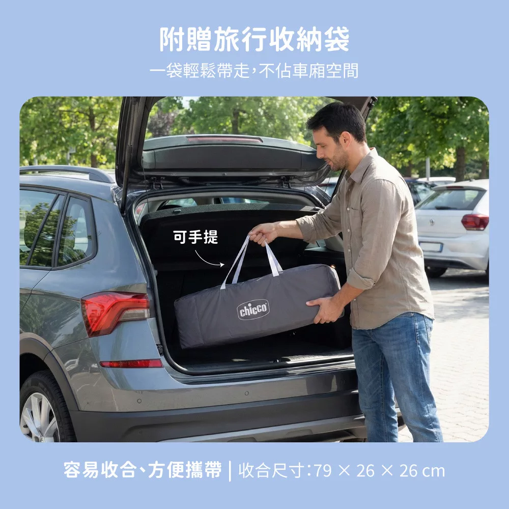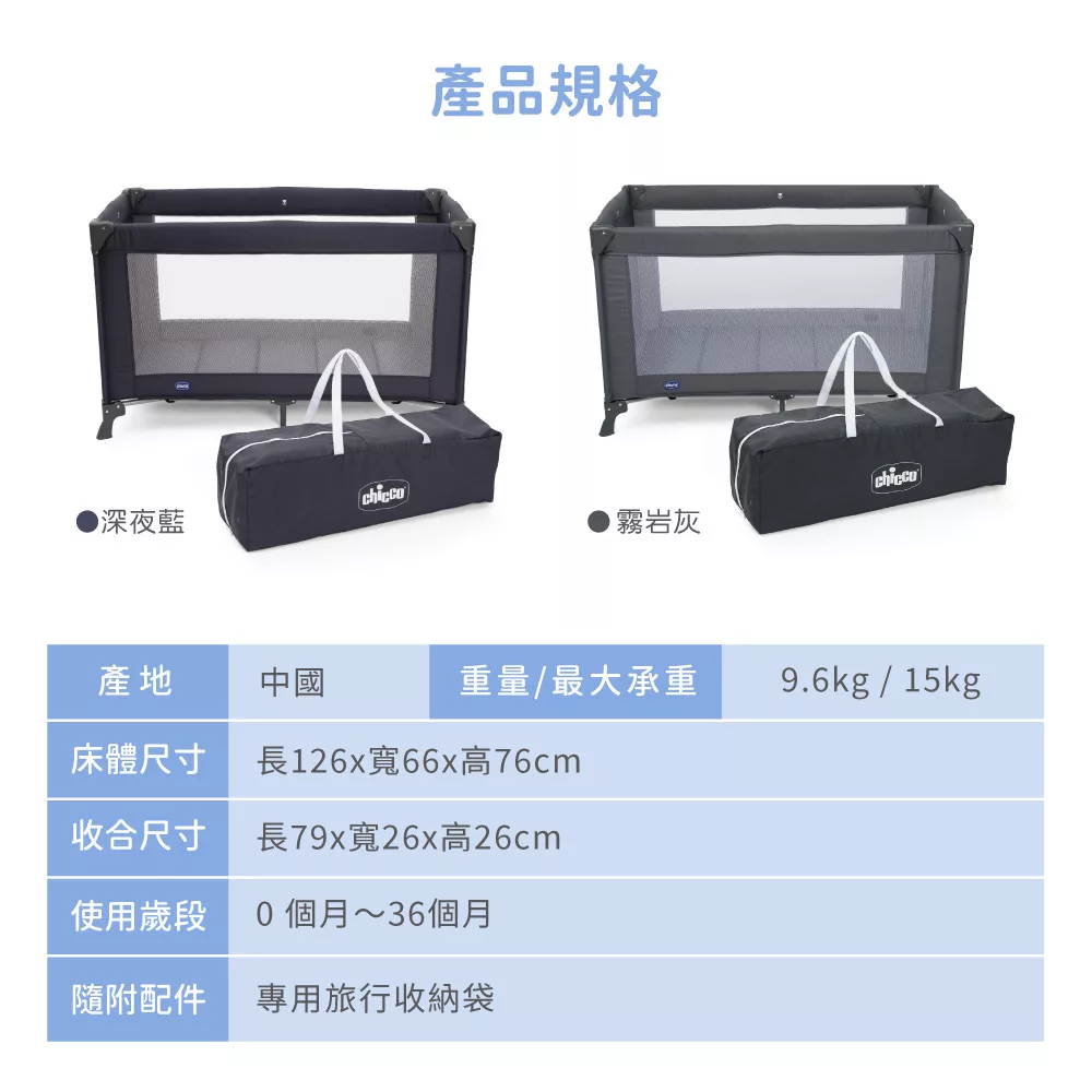 CHICCO goodnight輕旅折疊嬰兒遊戲床 湖水藍