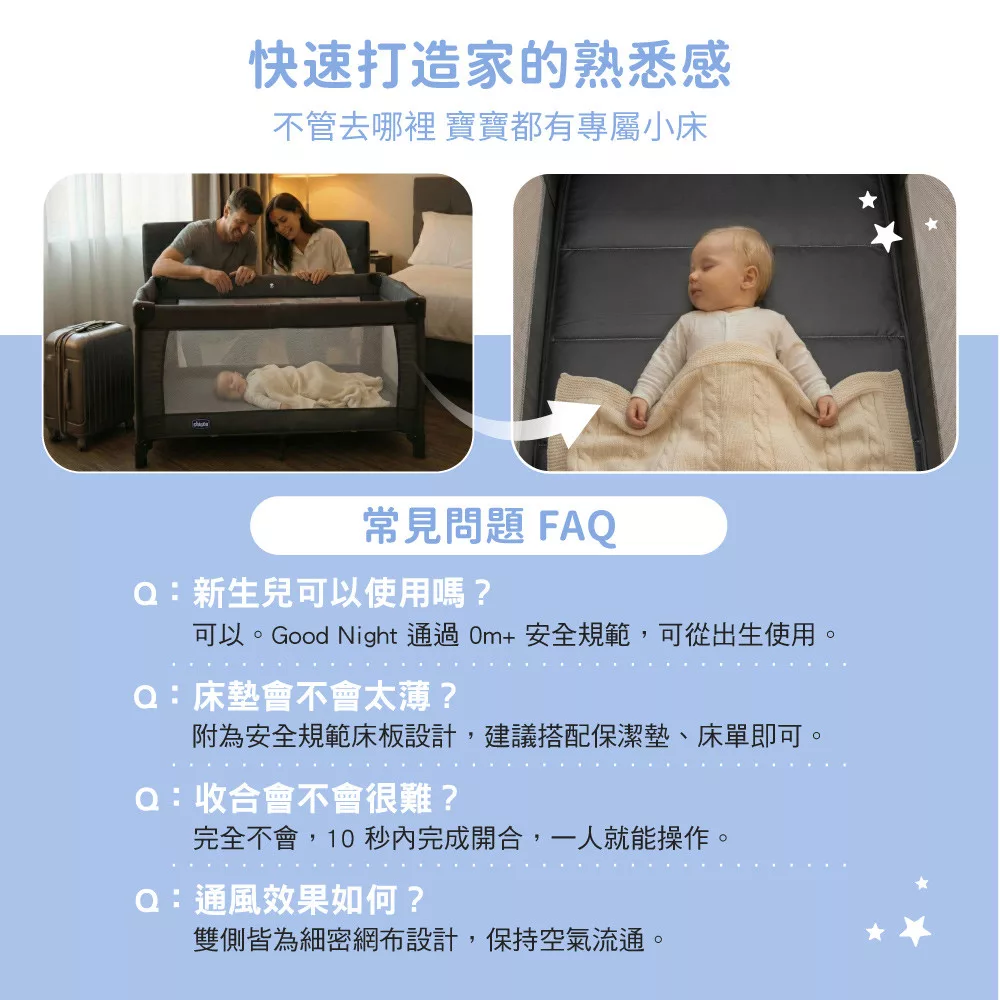 義大利原創設計×高穩定結構×透氣網布 打造寶寶的移動式小房間。不論去哪裡,都像睡在家裡。從新生兒一路陪伴至 36 個月。