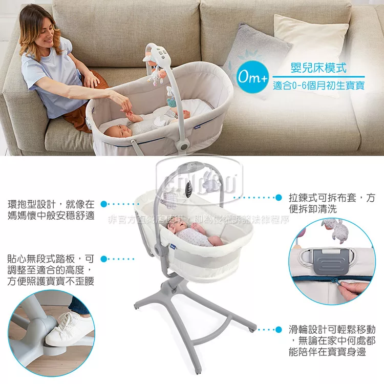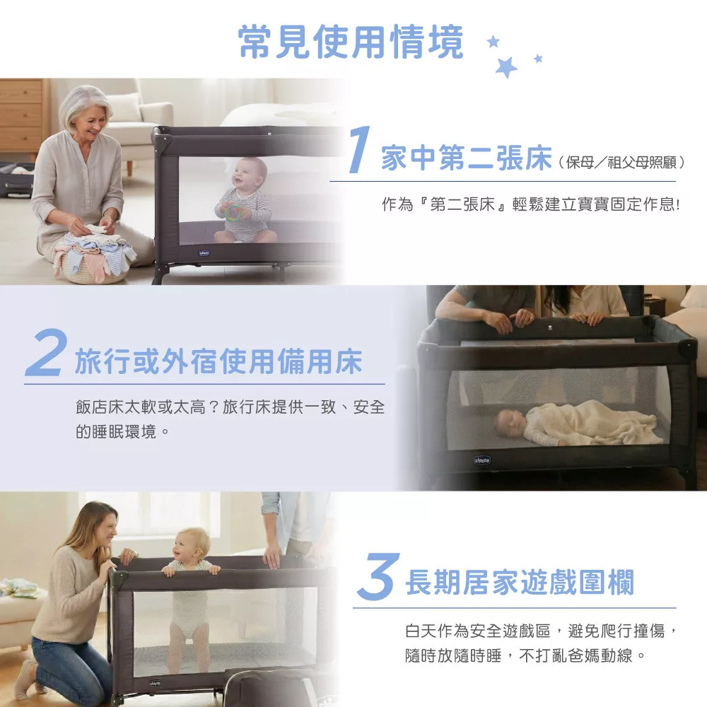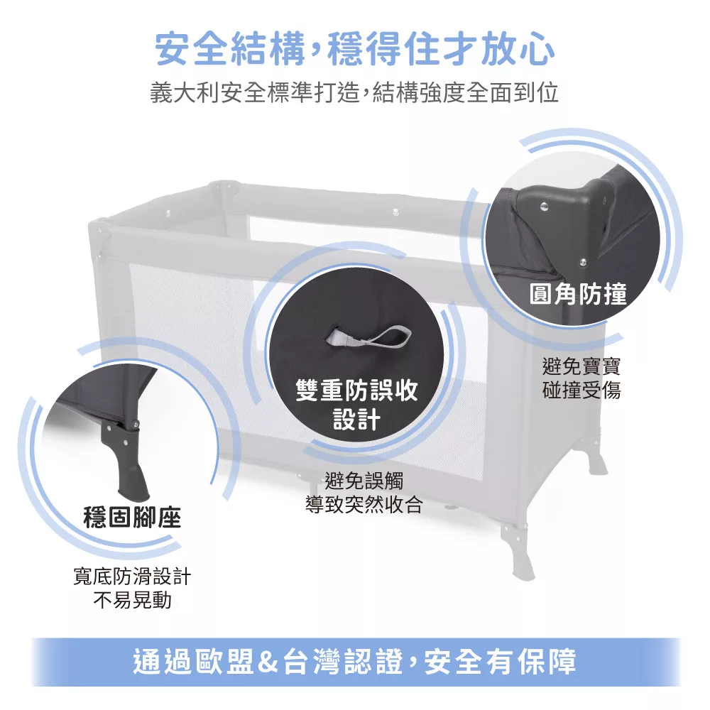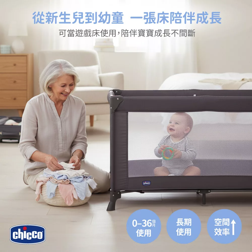 ●長期使用價值 適用至約3歲/15 kg,可當遊戲床使用。一床多用,性價比高。