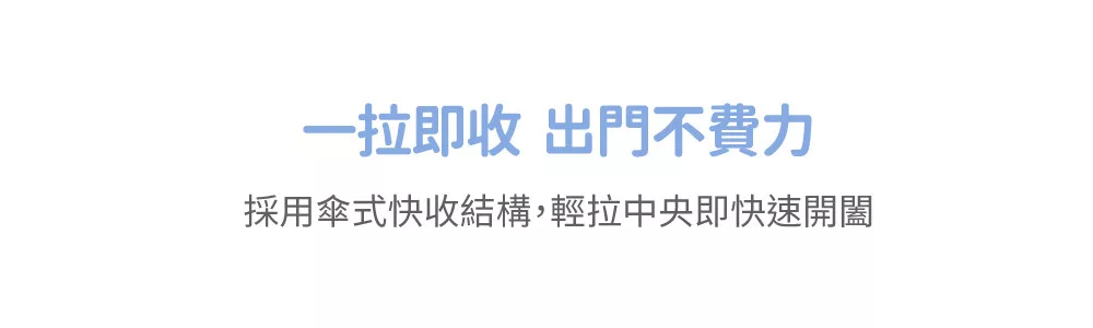 ●一鍵傘式快收設計 不需組裝,一人即可操作。 收起體積小,附提袋便於攜帶。 適合外出旅行、返鄉或露營使用。