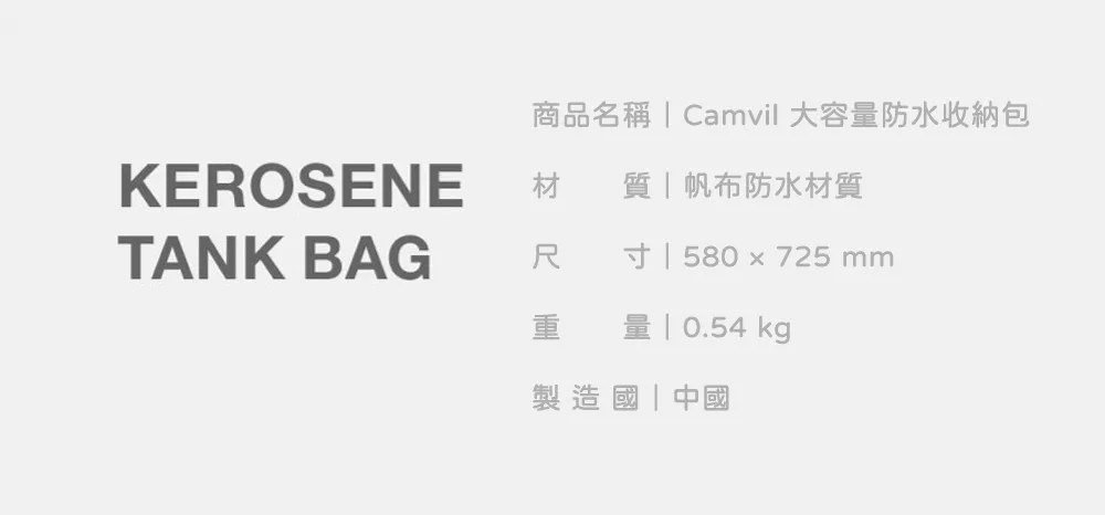 CAMVIL 20L KEROSENE TANK BAG 大容量多用途防水收納包-經典黑 (公司貨)