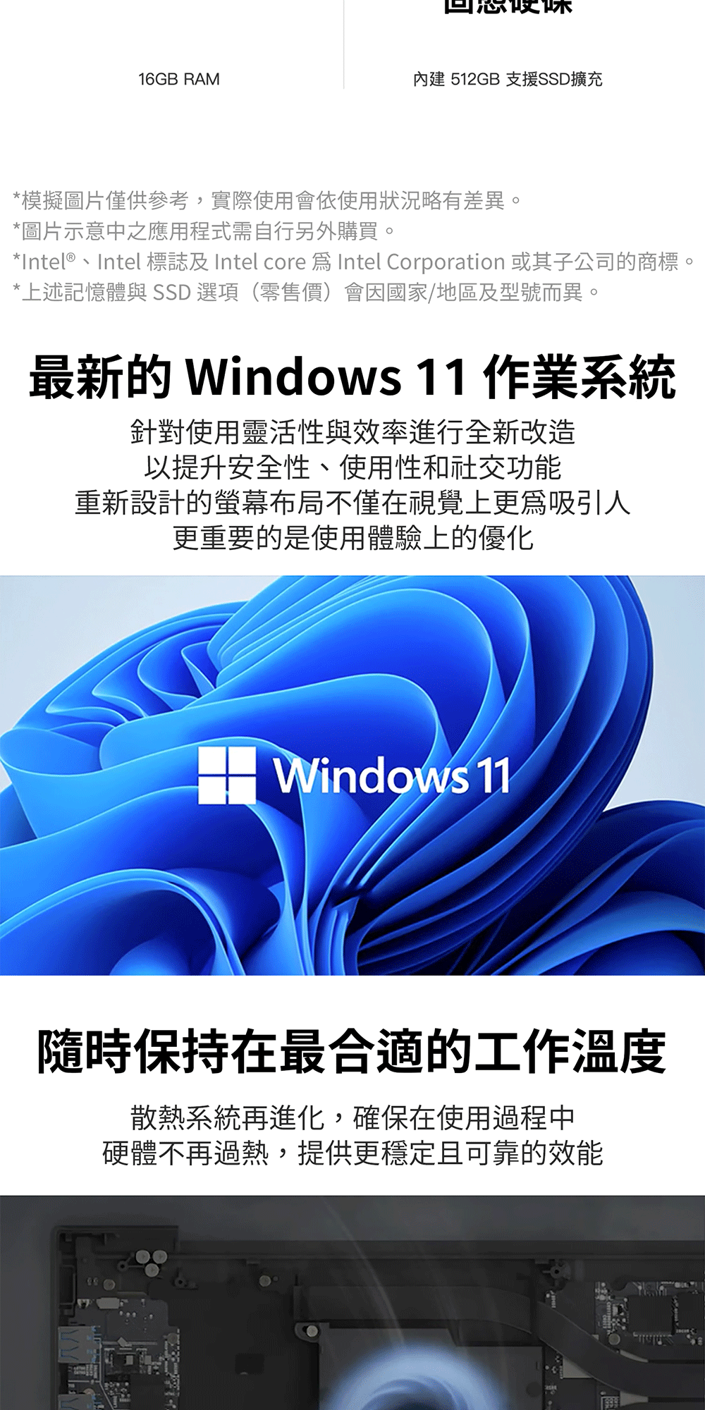 | 硬碟 / 硬碟擴充插槽 | 512 GB M.2 (2280)(NVMe) / Dual SSD slots (NVMe Gen4) |