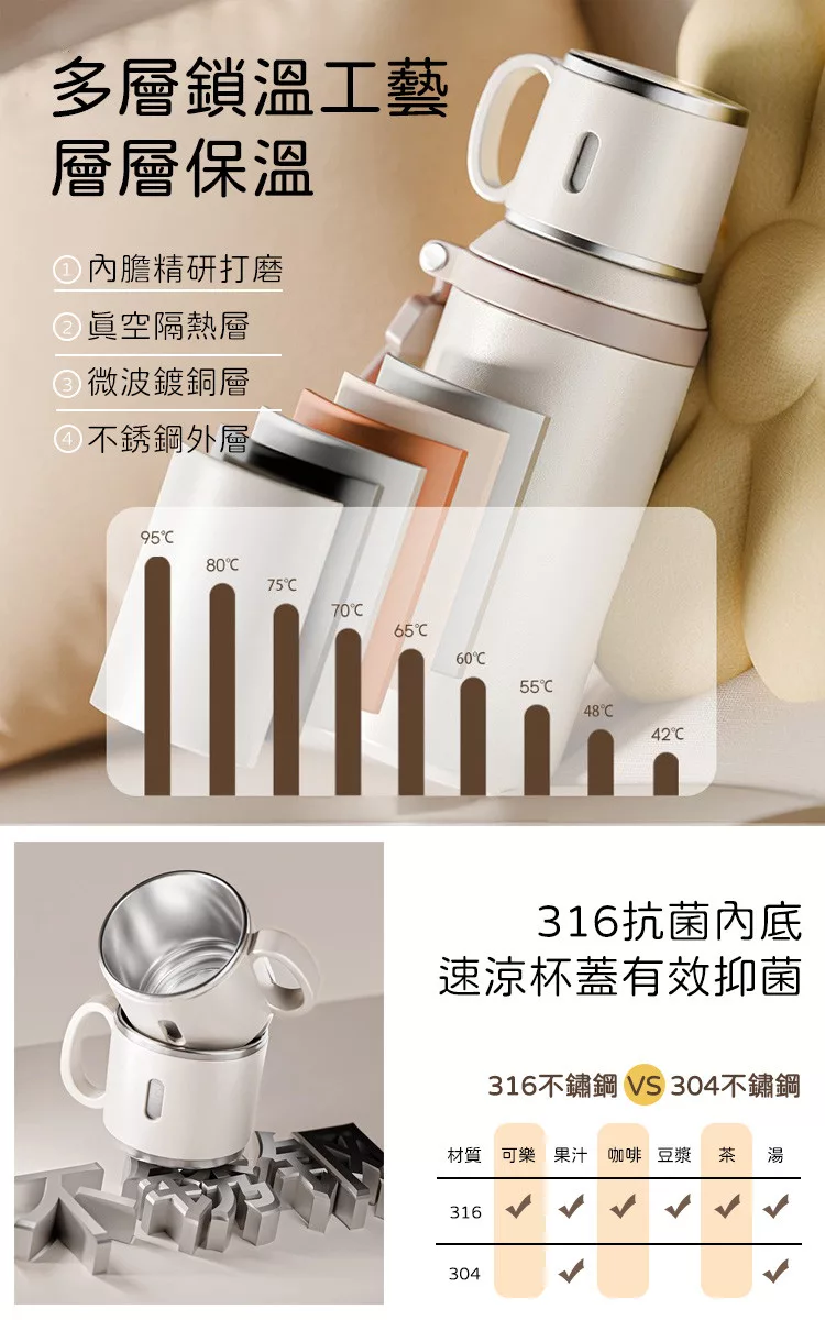 買一送一【美國康寧】Snapware 鋅light輕瓷超真空手提保溫杯820ml