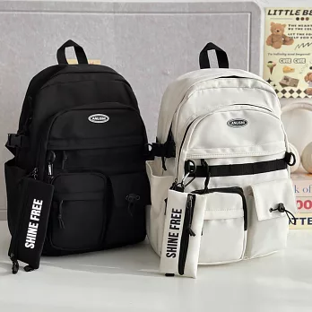 【Sayaka紗彌佳】買一送一! 買就送手拿包 極輕量0.3kg 都市漫步空氣感撞色抽繩 超輕量防潑 後背包 -黑色