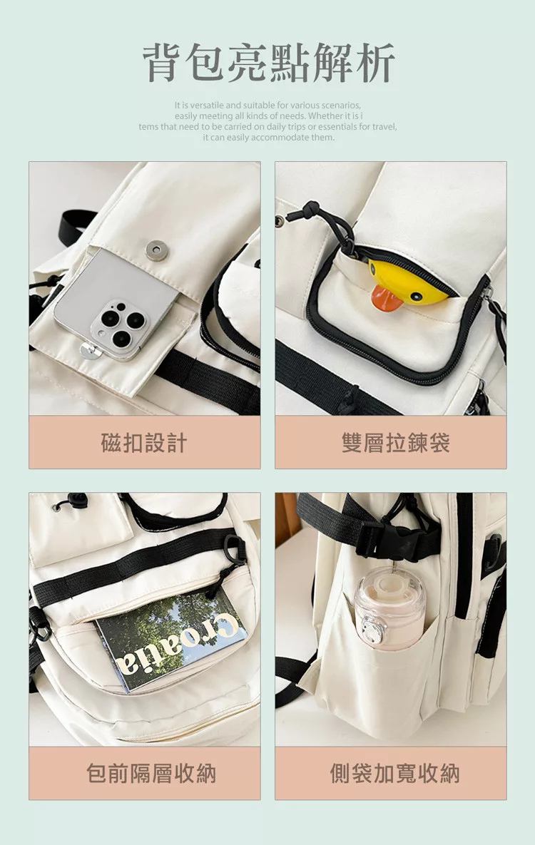 CHENSON 外出最愛中尺寸8口袋後背包 (CG83329-3) 黑