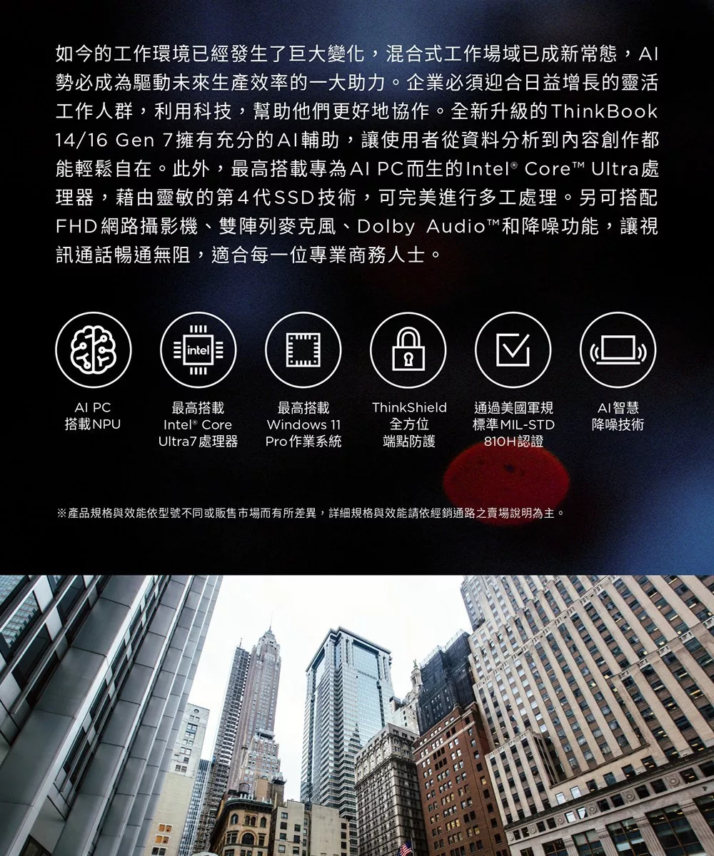 【Lenovo】聯想 ThinkBook 16 Gen7 16吋 AI PC 三年保固 Ultra 7 155U/16G/1TB/W11P