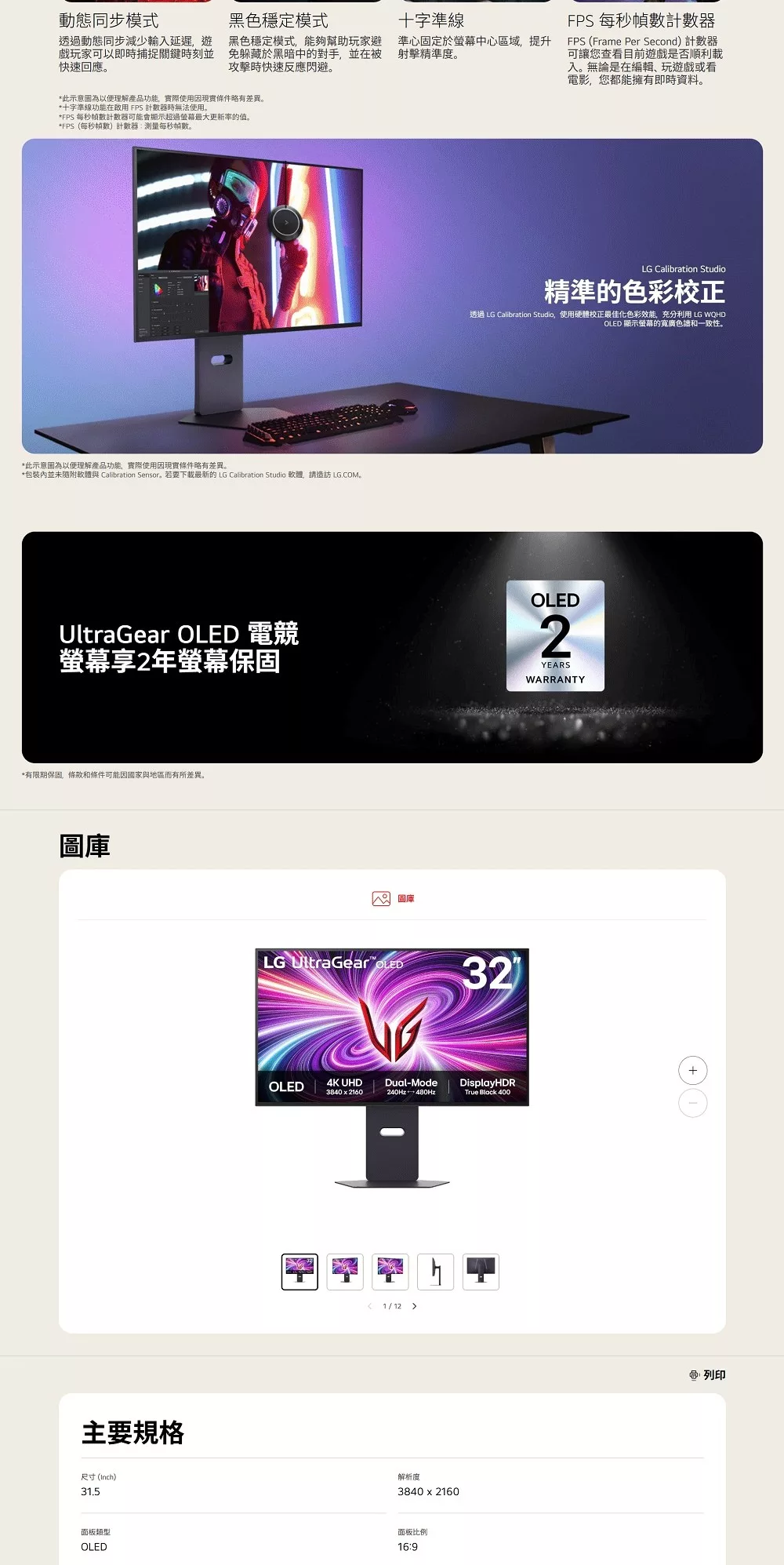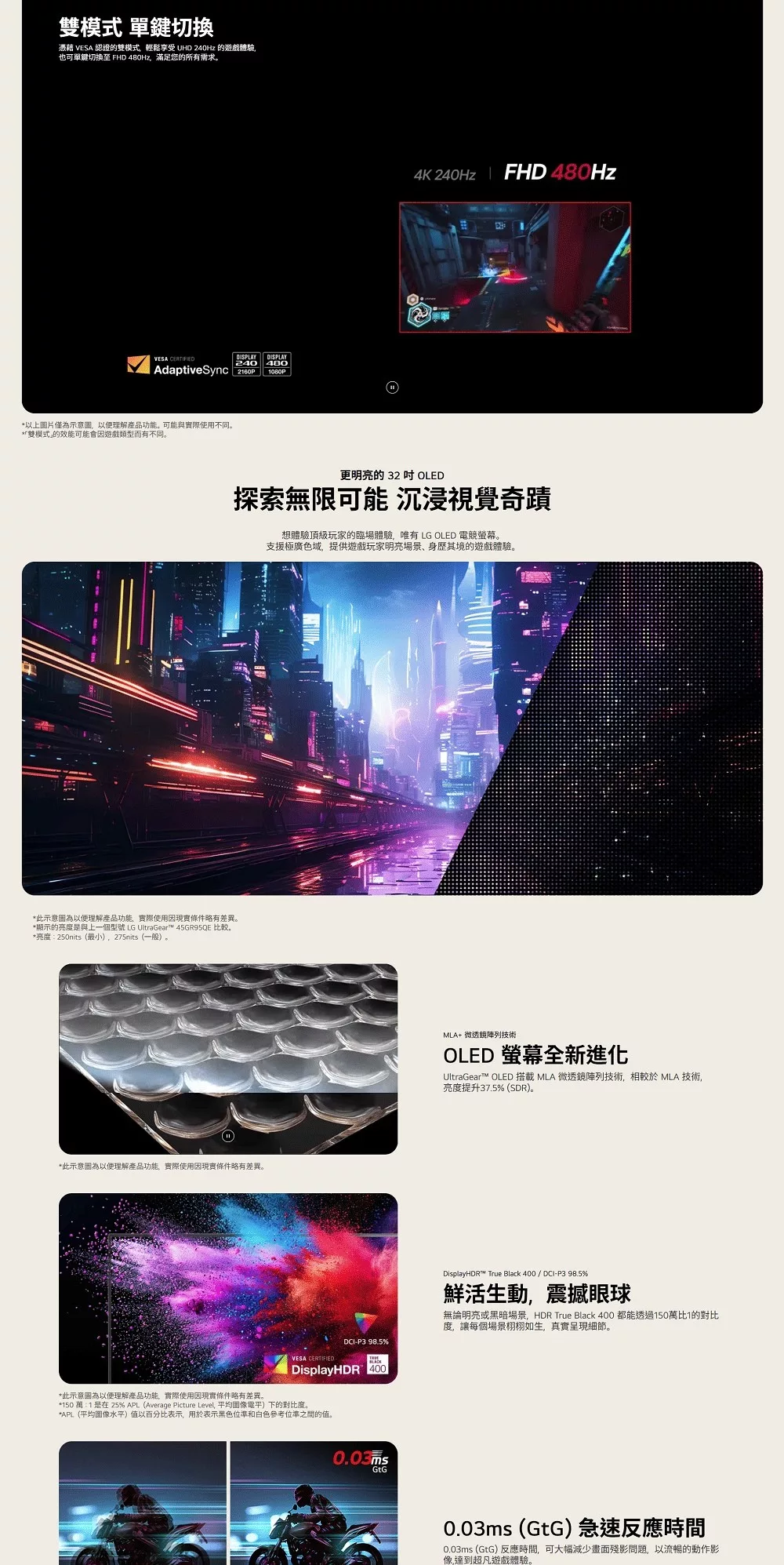 LG 樂金 32GS95UV-W 32GS95UV-B 32吋 UltraGear™ 4K OLED 雙模式專業電競螢幕 顯示器 黑