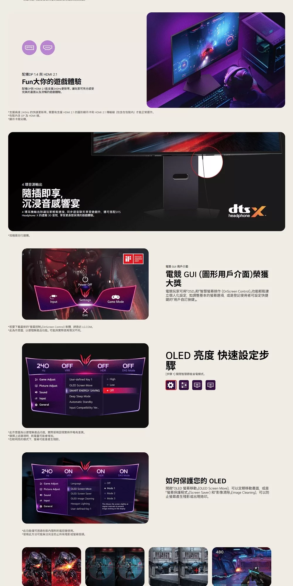 LG 樂金 34GX90SA-W 34吋 UltraGear™ 21:9 WQHD 240Hz OLED曲面智慧電競螢幕