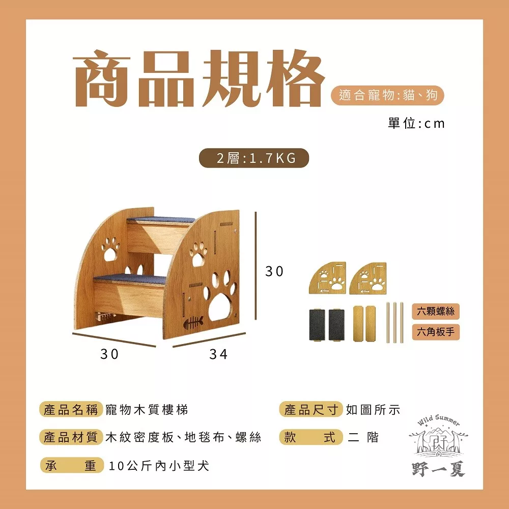 【野一夏】小型貓犬適用30cm寵物斜坡二層輔助梯 寵物梯 寵物樓梯 狗樓梯 貓樓梯 跳台 階梯