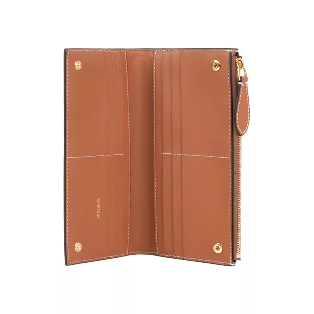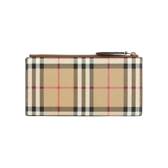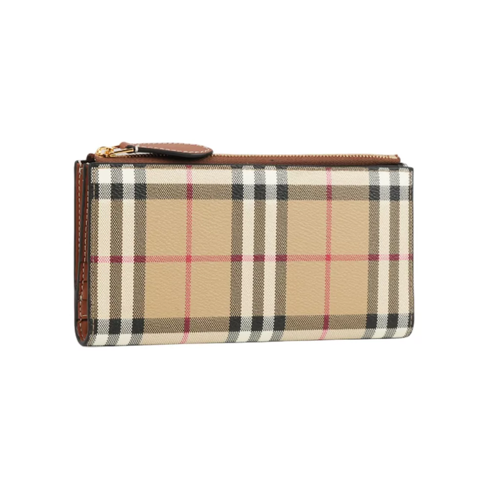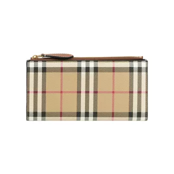 BURBERRY Lancaster 牛皮及帆布格紋三折短夾 (玫瑰棕/棕色)