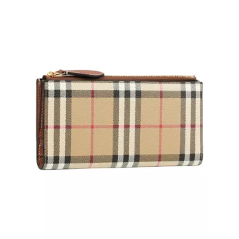 BURBERRY Vintage 格紋對開多卡長夾 (炭灰色)