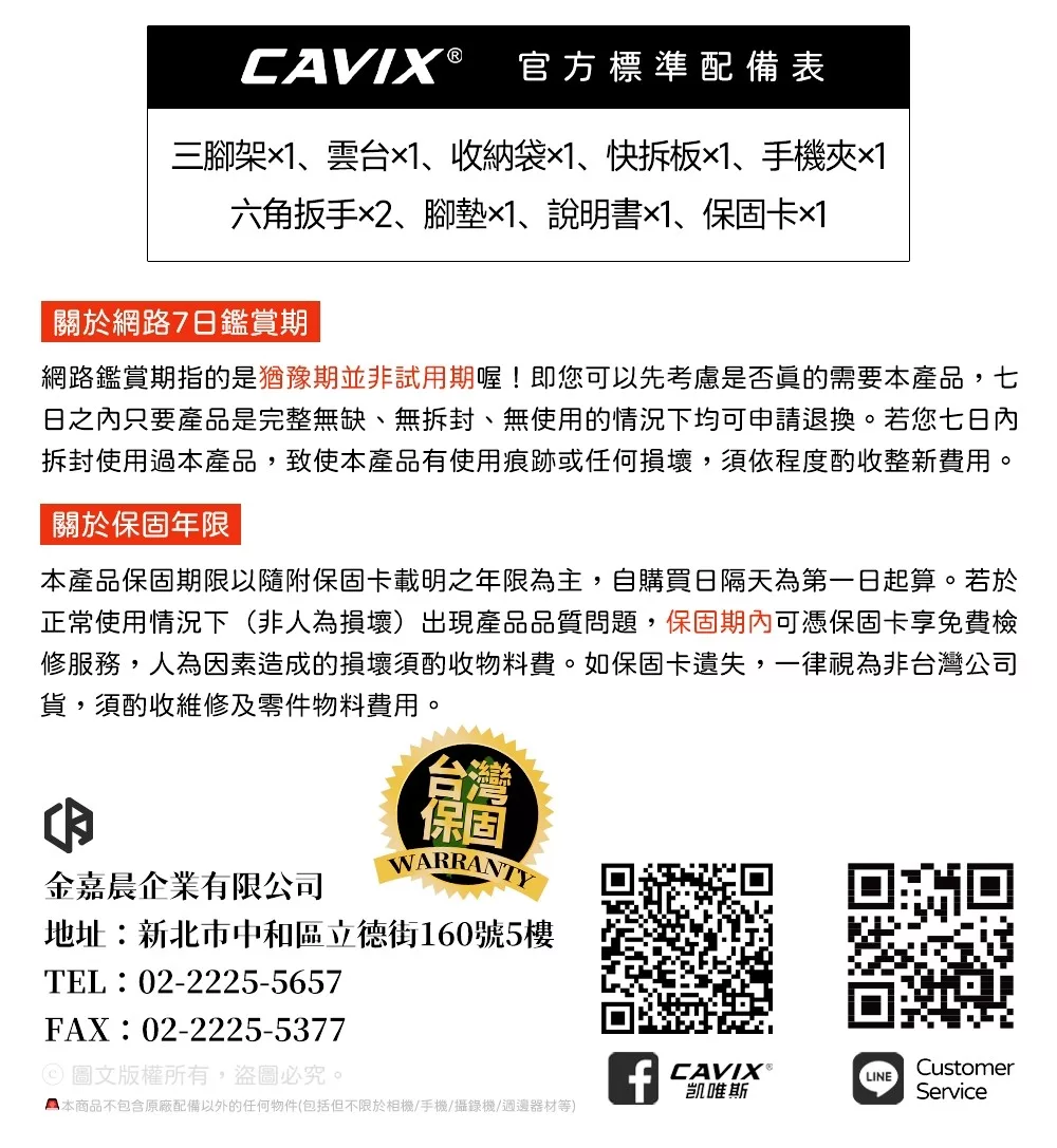CAVIX 凱唯斯 YT-224C 玉兔碳纖維腳架套組