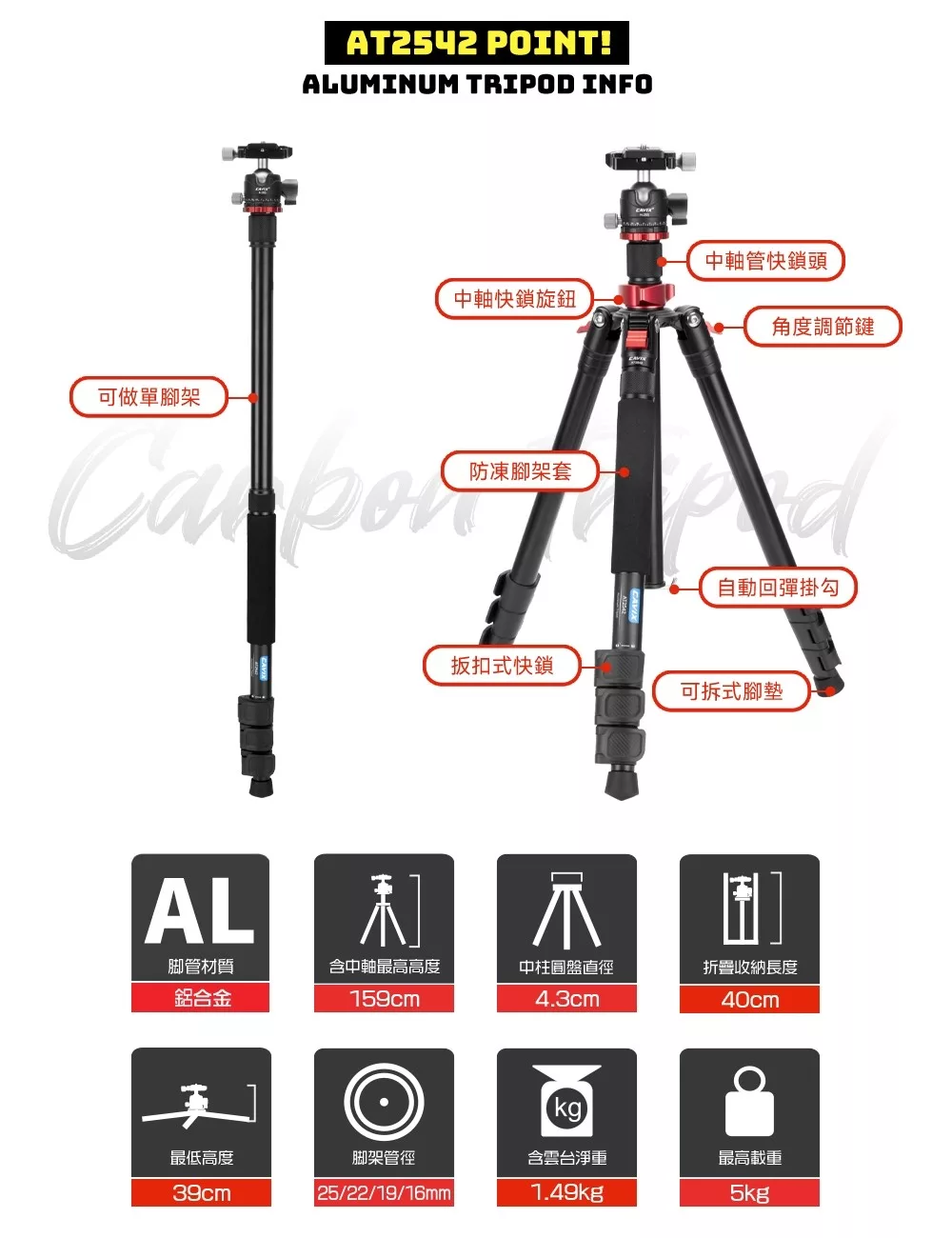 CAVIX 凱唯斯 AT-2542 旅行鋁合金反折腳架套組