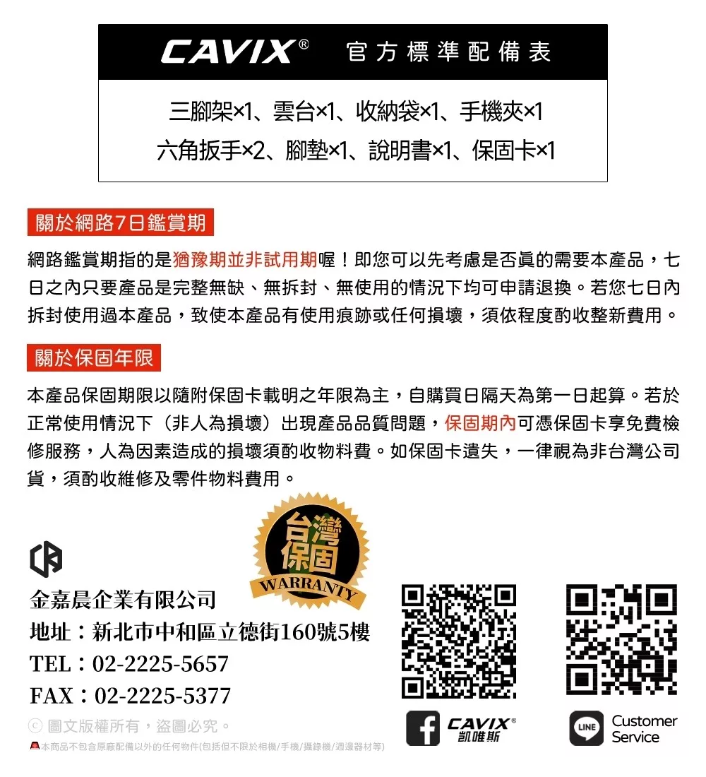 CAVIX 凱唯斯 YT-224C 玉兔碳纖維腳架套組