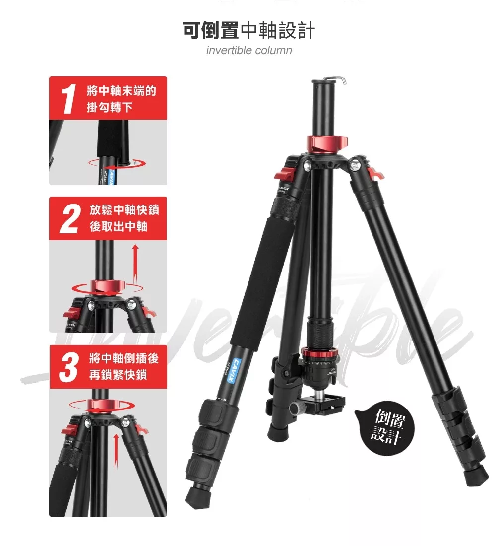 CAVIX 凱唯斯 AT-2542H 旅行鋁合金反折腳架套組(特高版)