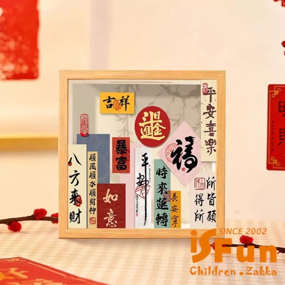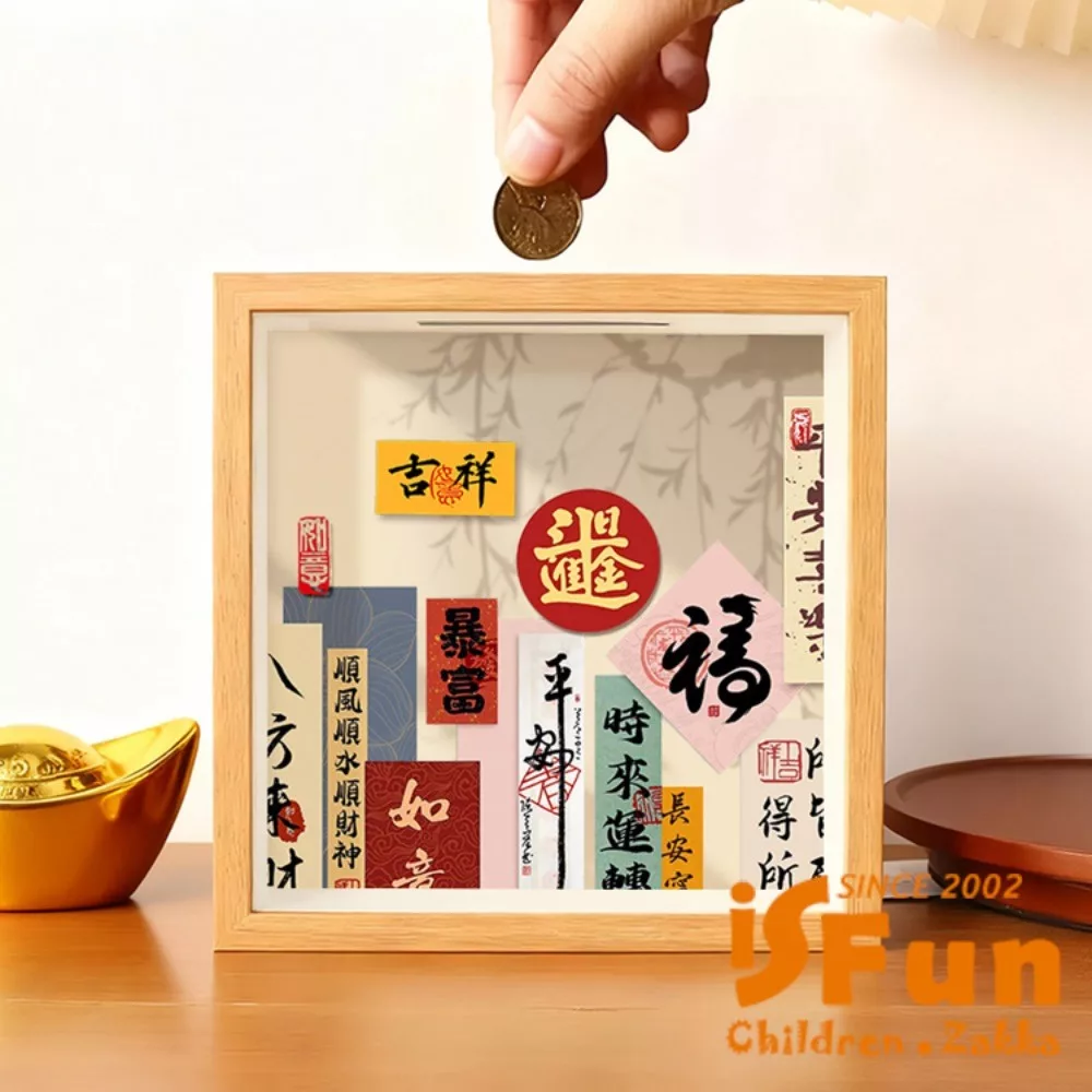 【iSFun】拼貼喜氣 相框造型實木存錢筒/時來運轉 時來運轉