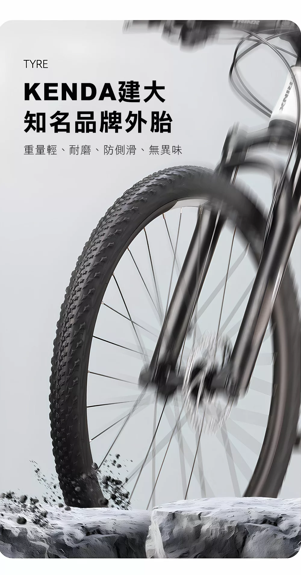 輪胎:KENDA 26X2.1 細紋越野胎 抓地力佳