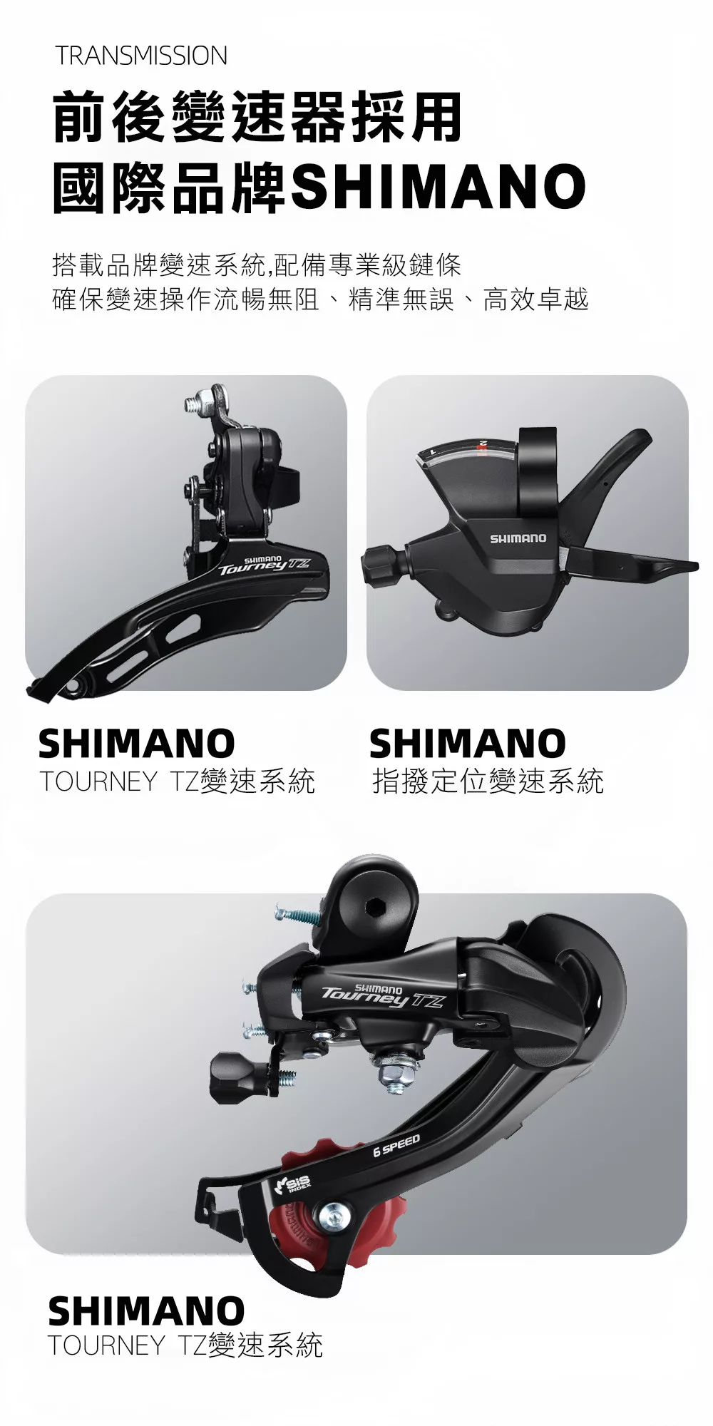 前變速器:日本 SHIMANO TOURNEY TZ 變速系統