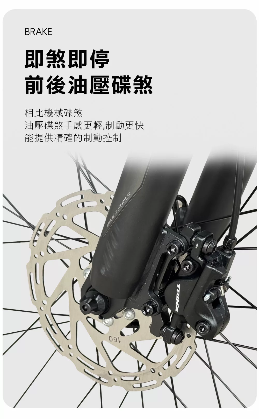 剎車:TRINX 油壓碟剎 160 M/M