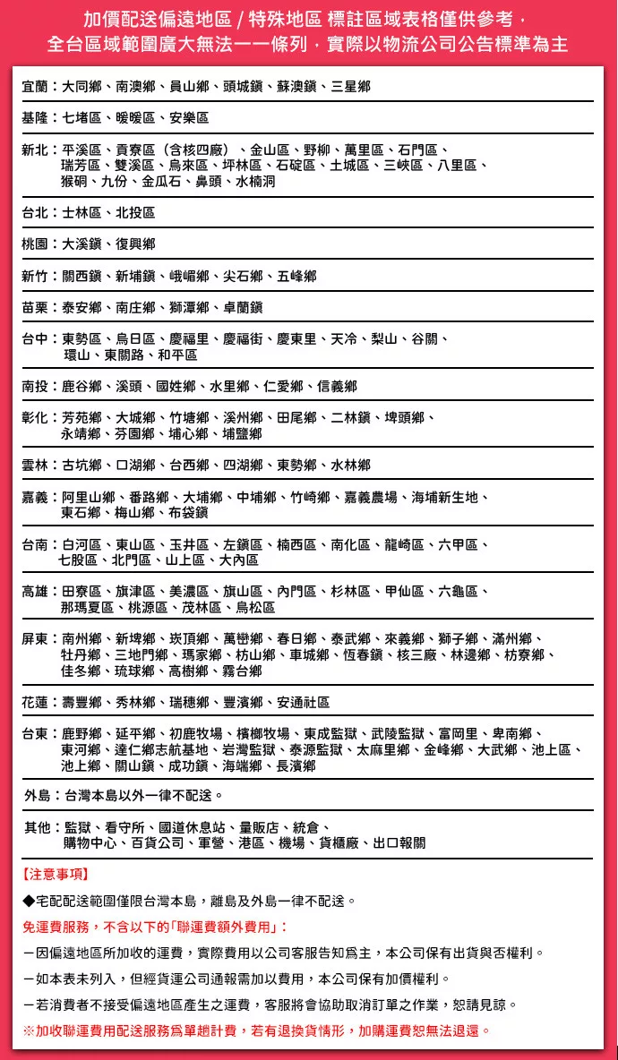 當您於此頁面下單表示您了解並同意下述規範,請注意!