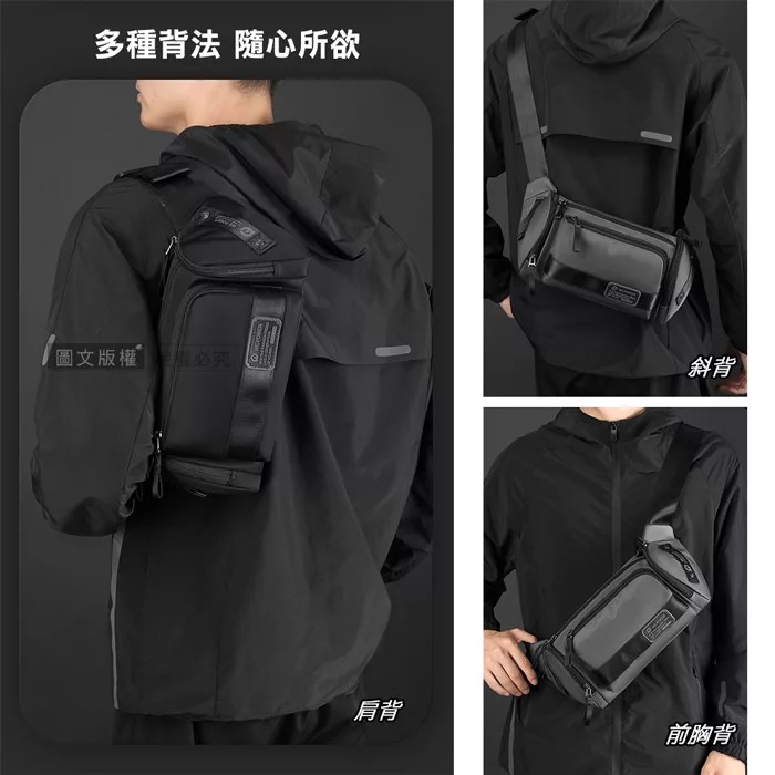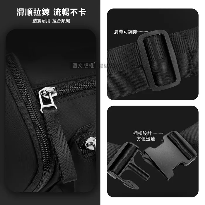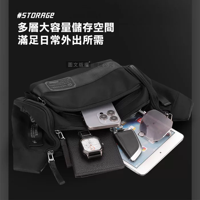 靈活穿梭,機能隨行 採用防潑水面料,免受小雨和潑濺的侵害 多用途設計,可斜背、肩背也可秒變腰包! 立體型設計,容量更升級,可裝 iPad mini |