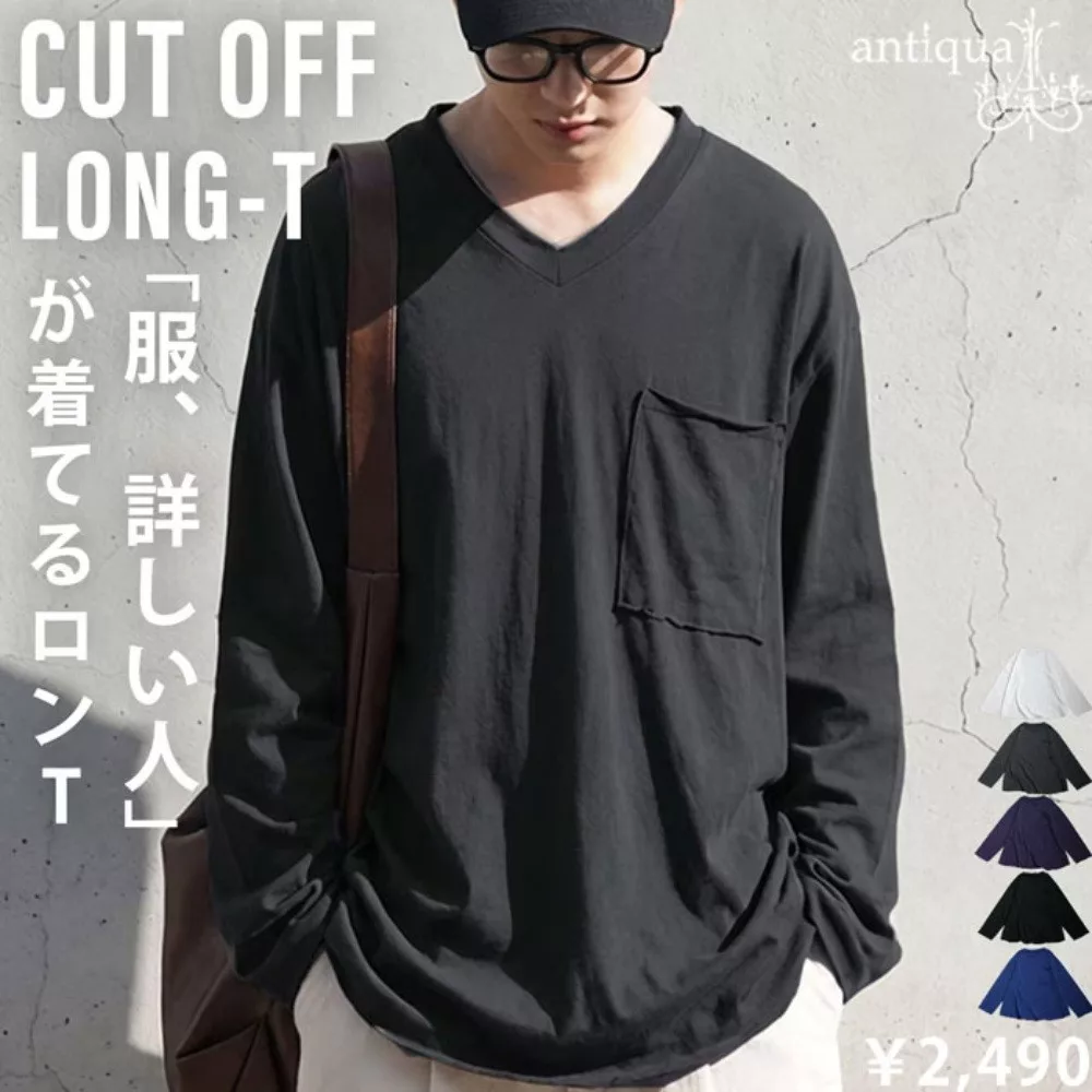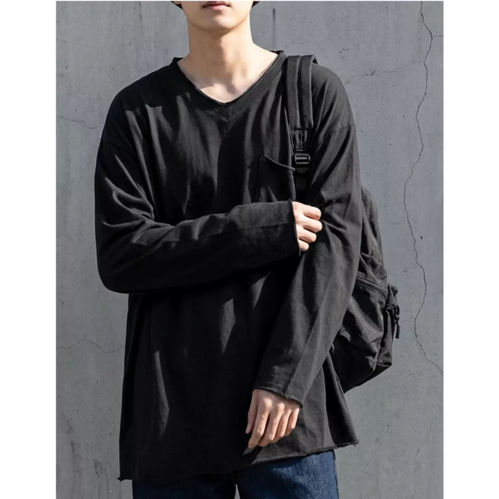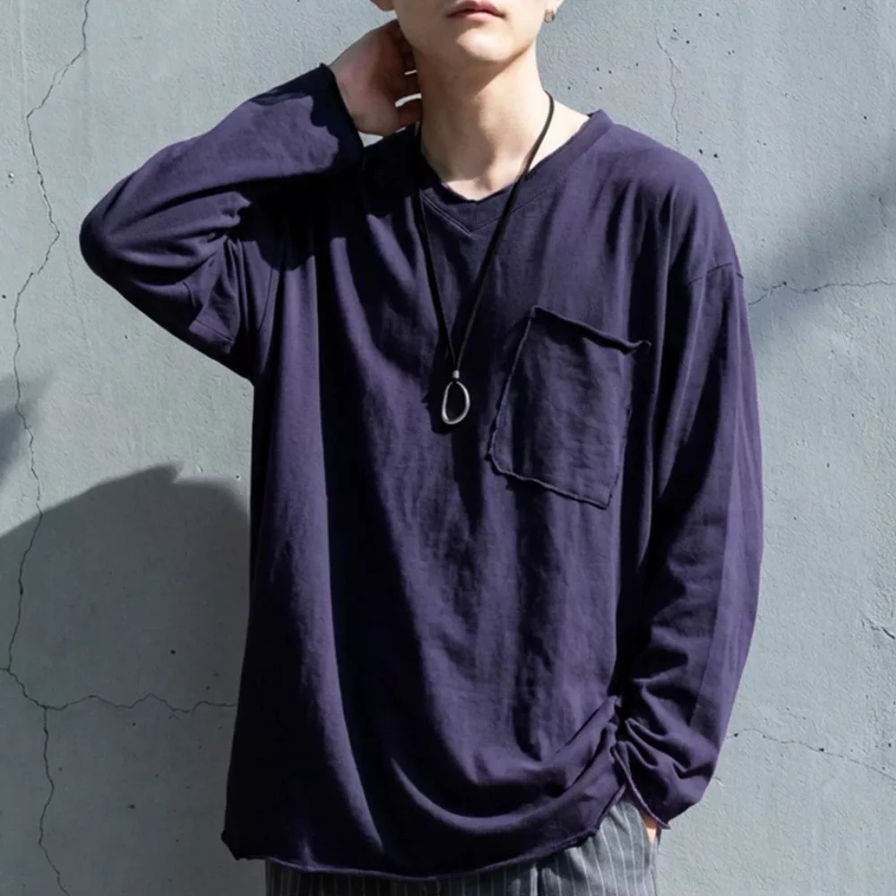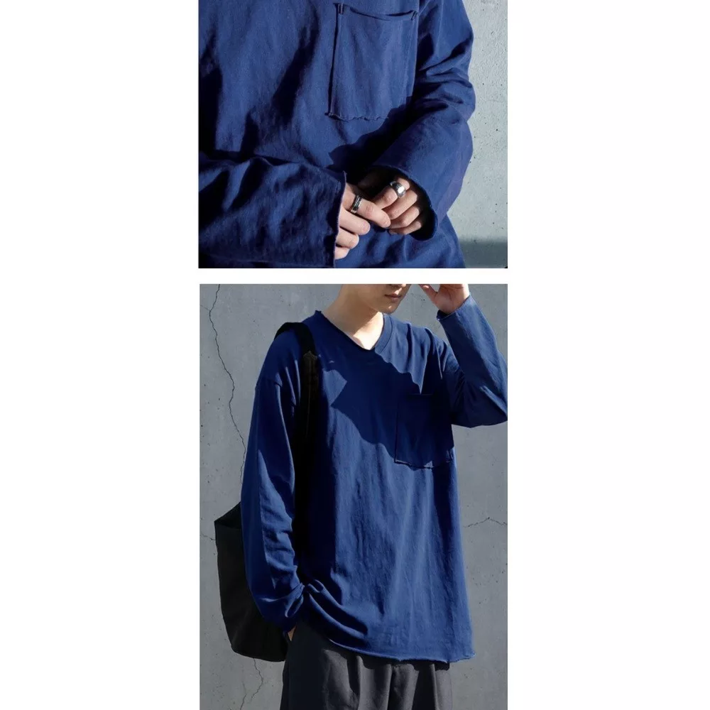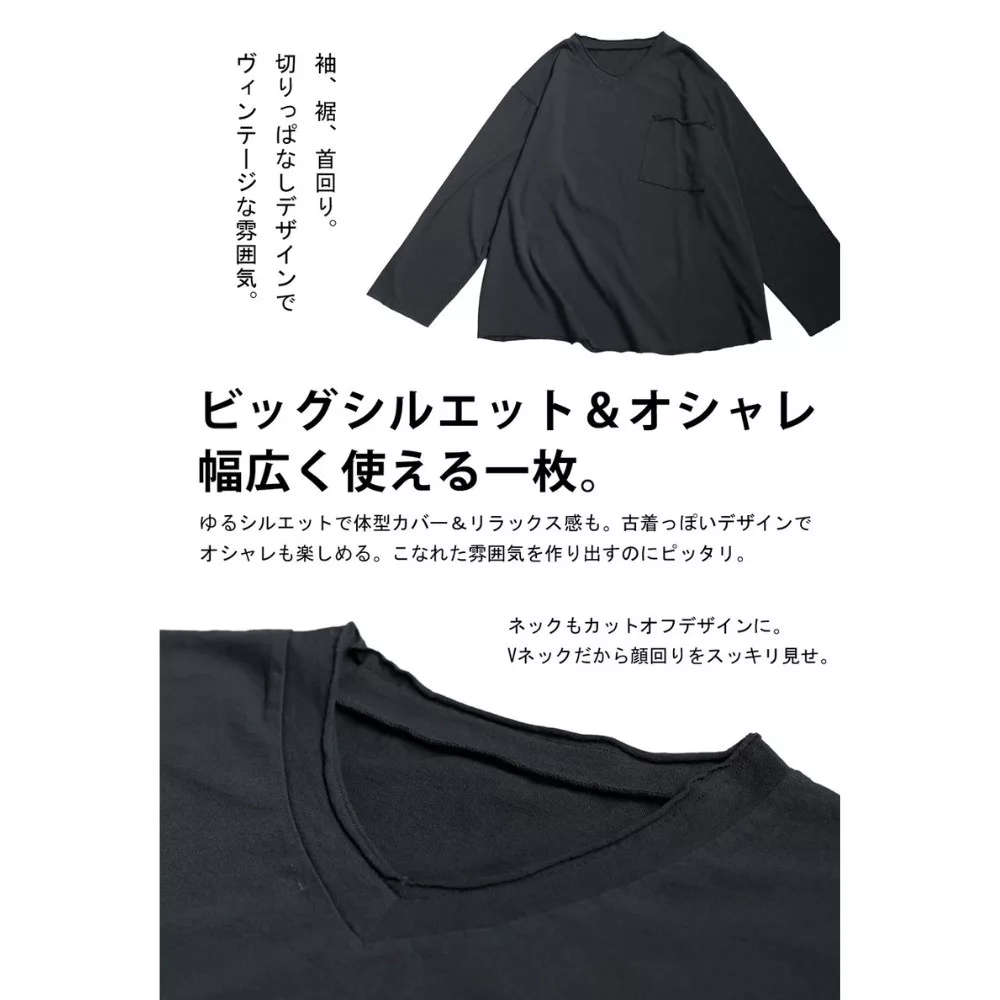 ・這款長袖 V 領 T 恤採用復古風格的切邊設計,呈現獨特質感。
