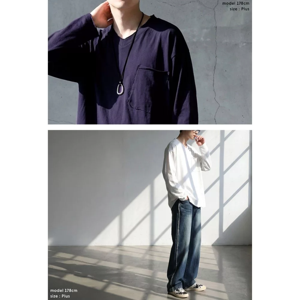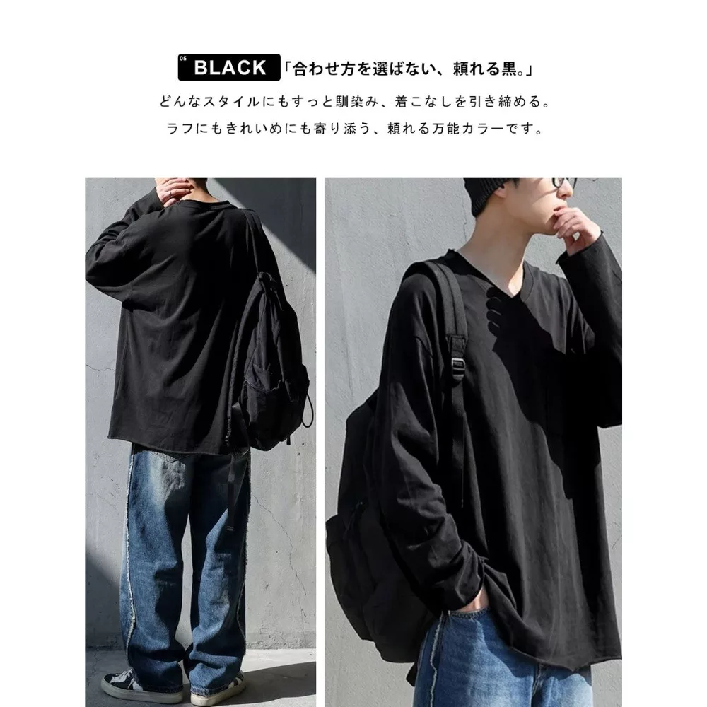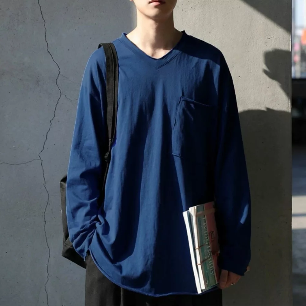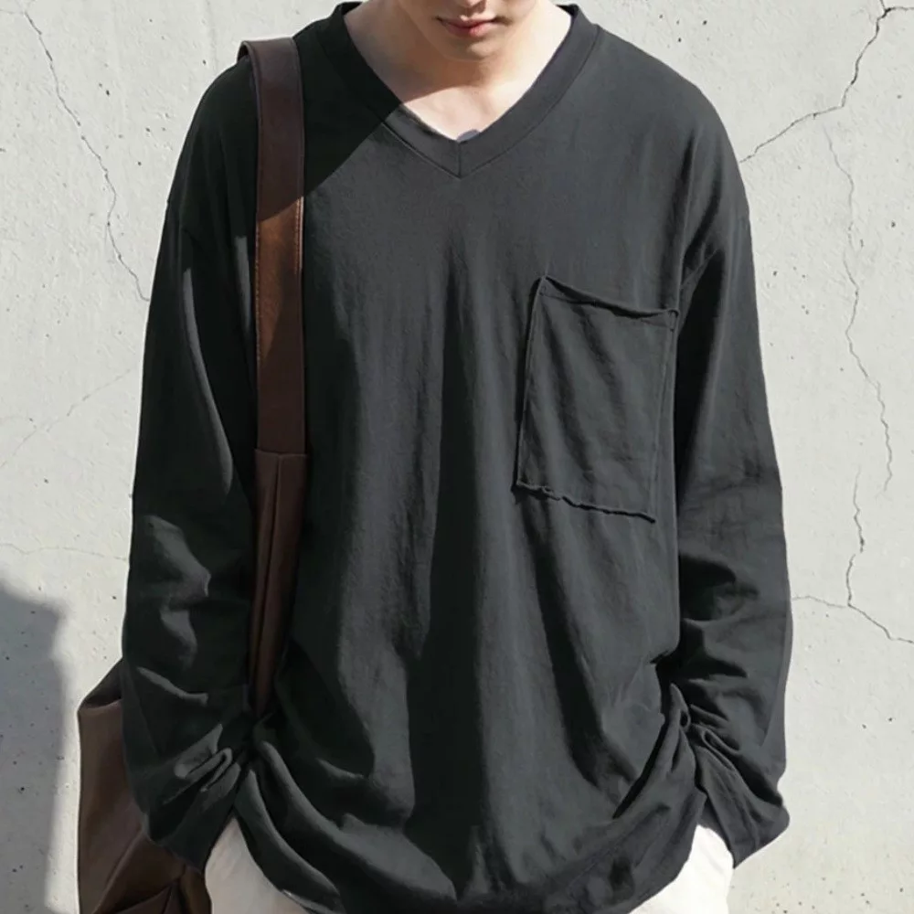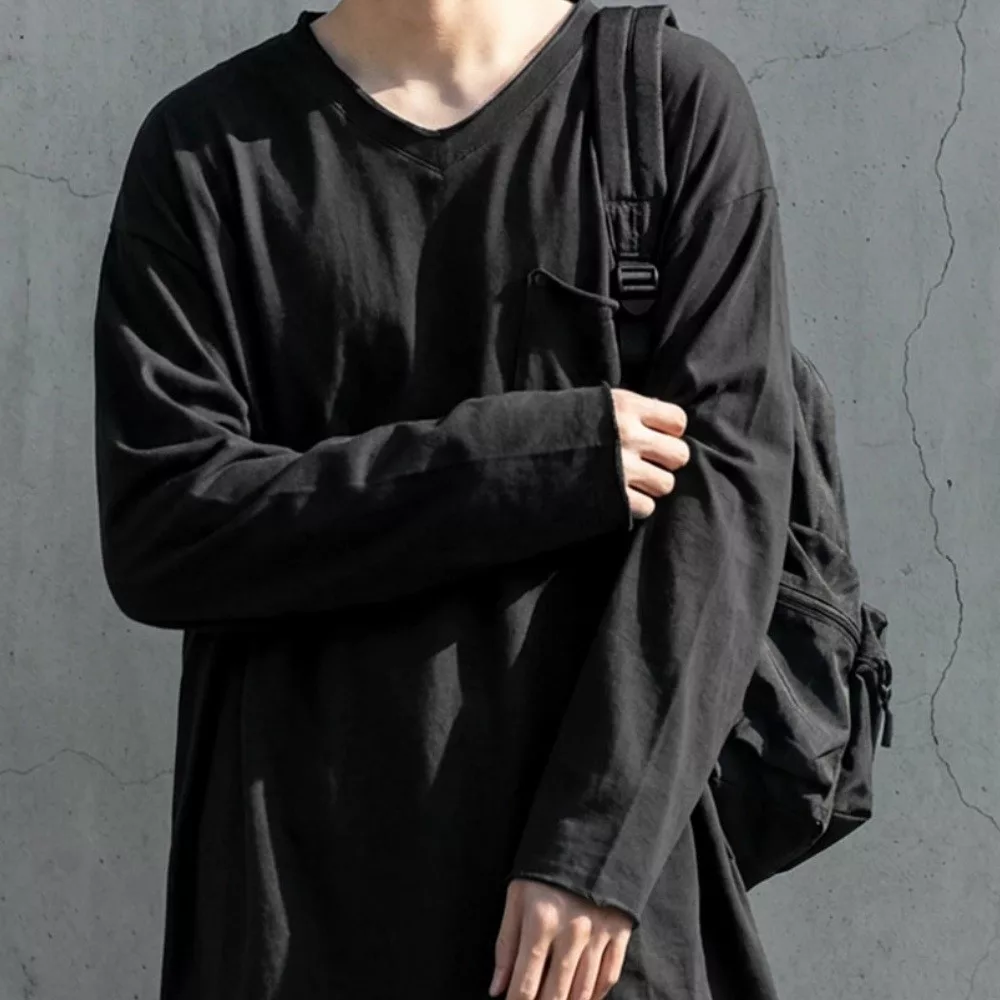 ・這款長袖 V 領 T 恤採用復古風格的切邊設計,呈現獨特質感。