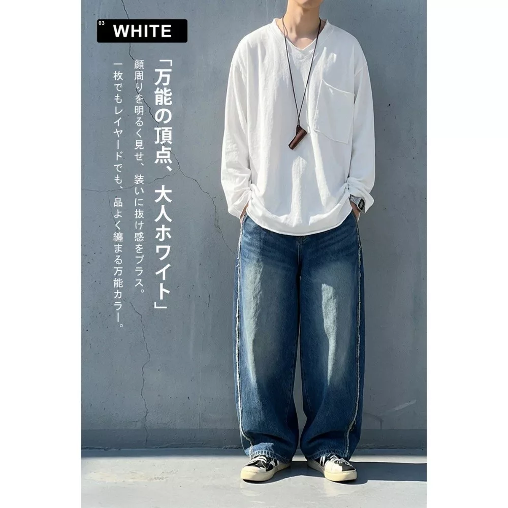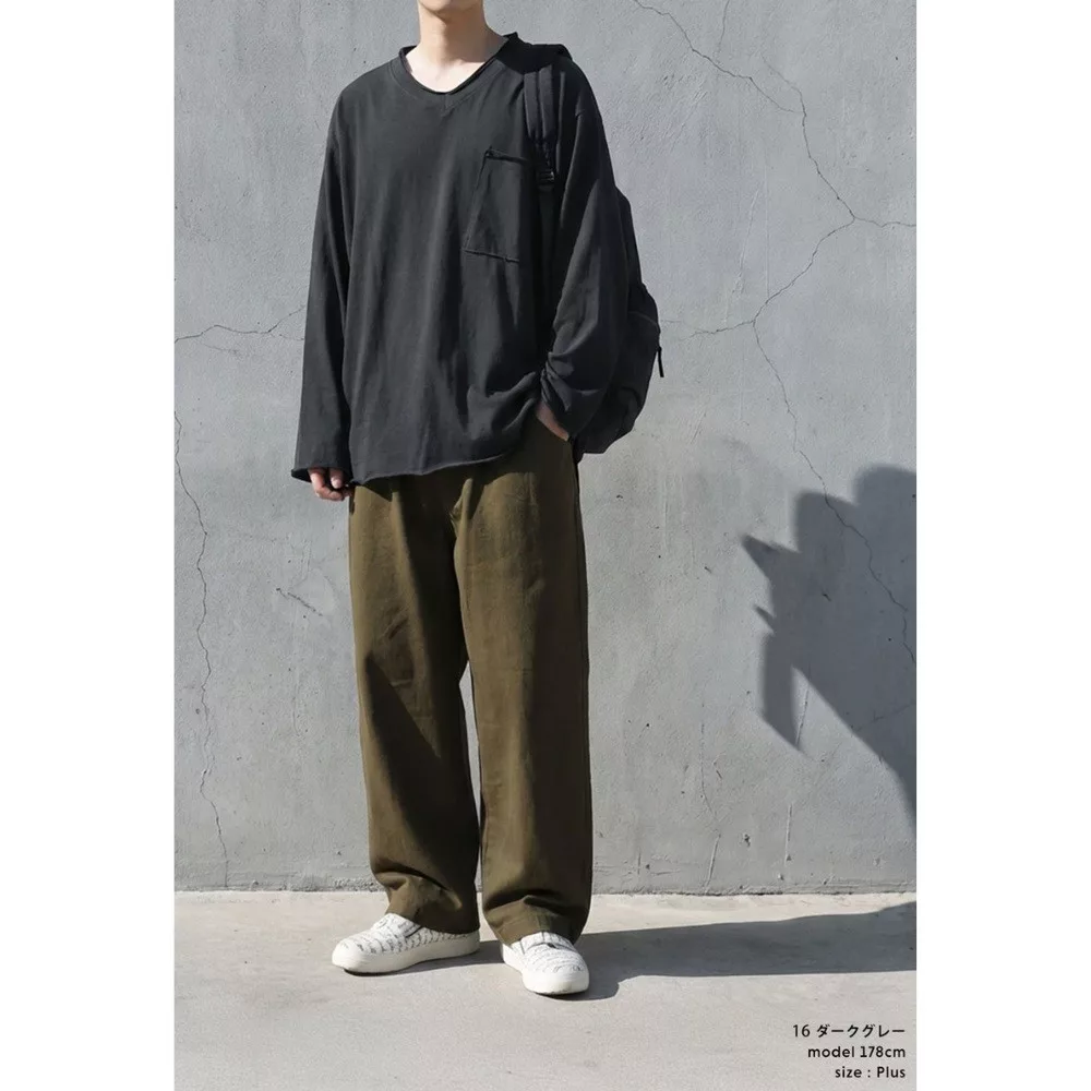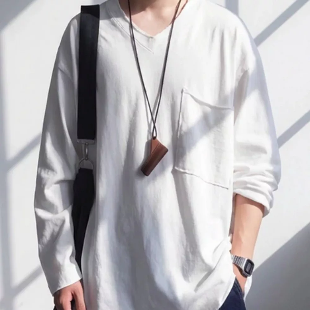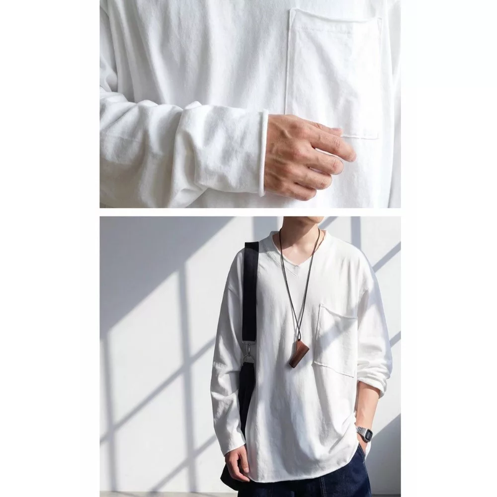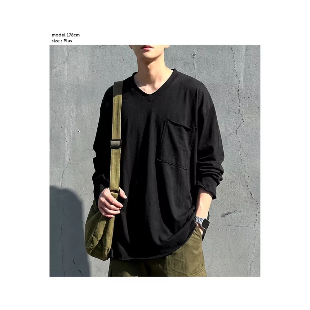 ・這款長袖 V 領 T 恤採用復古風格的切邊設計,呈現獨特質感。