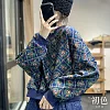 【初色】休閒復古印花圓領落肩袖長袖鋪棉加絨寬鬆中大尺碼內搭打底衫T恤大學T上衣-藍色-31458(L/XL可選) L 藍色